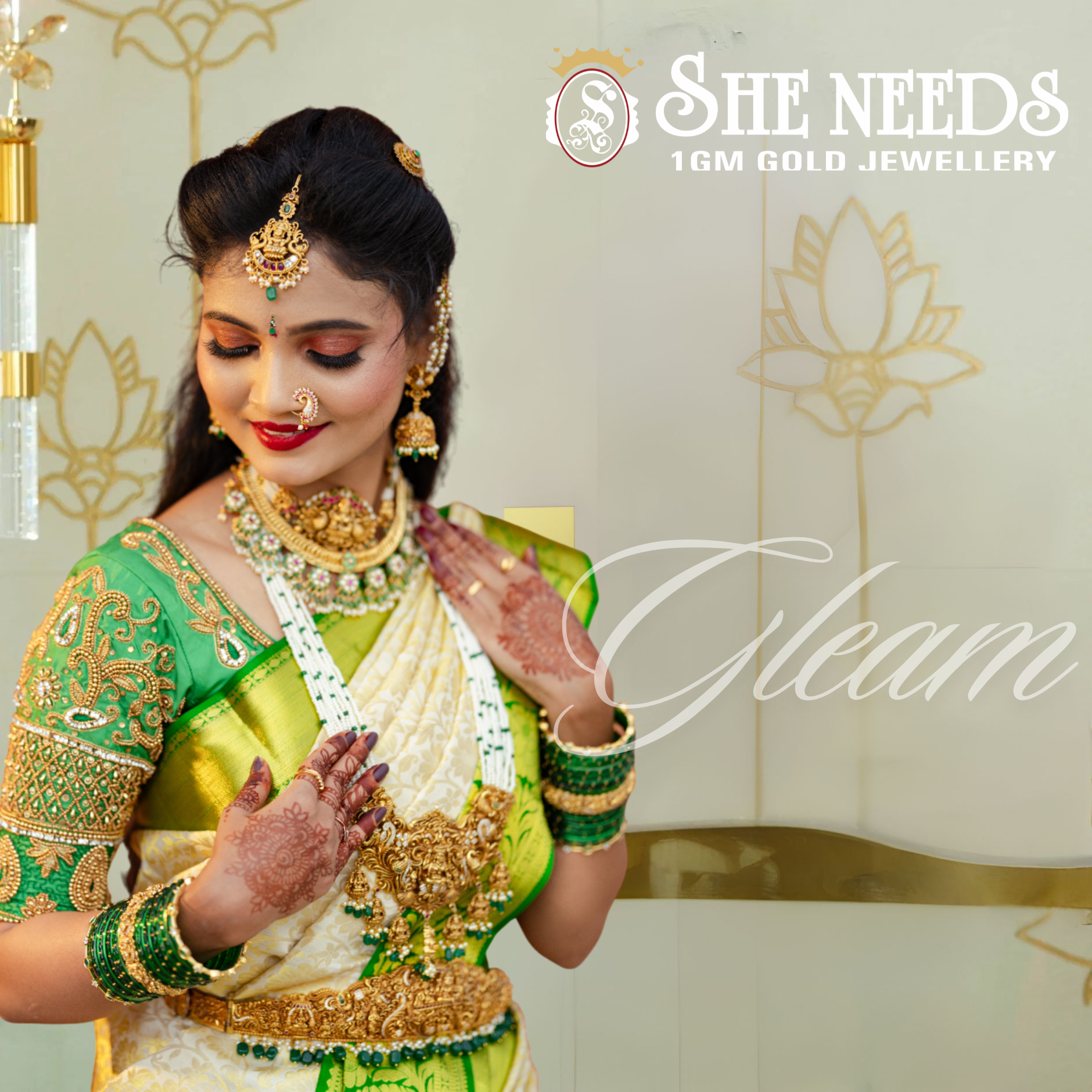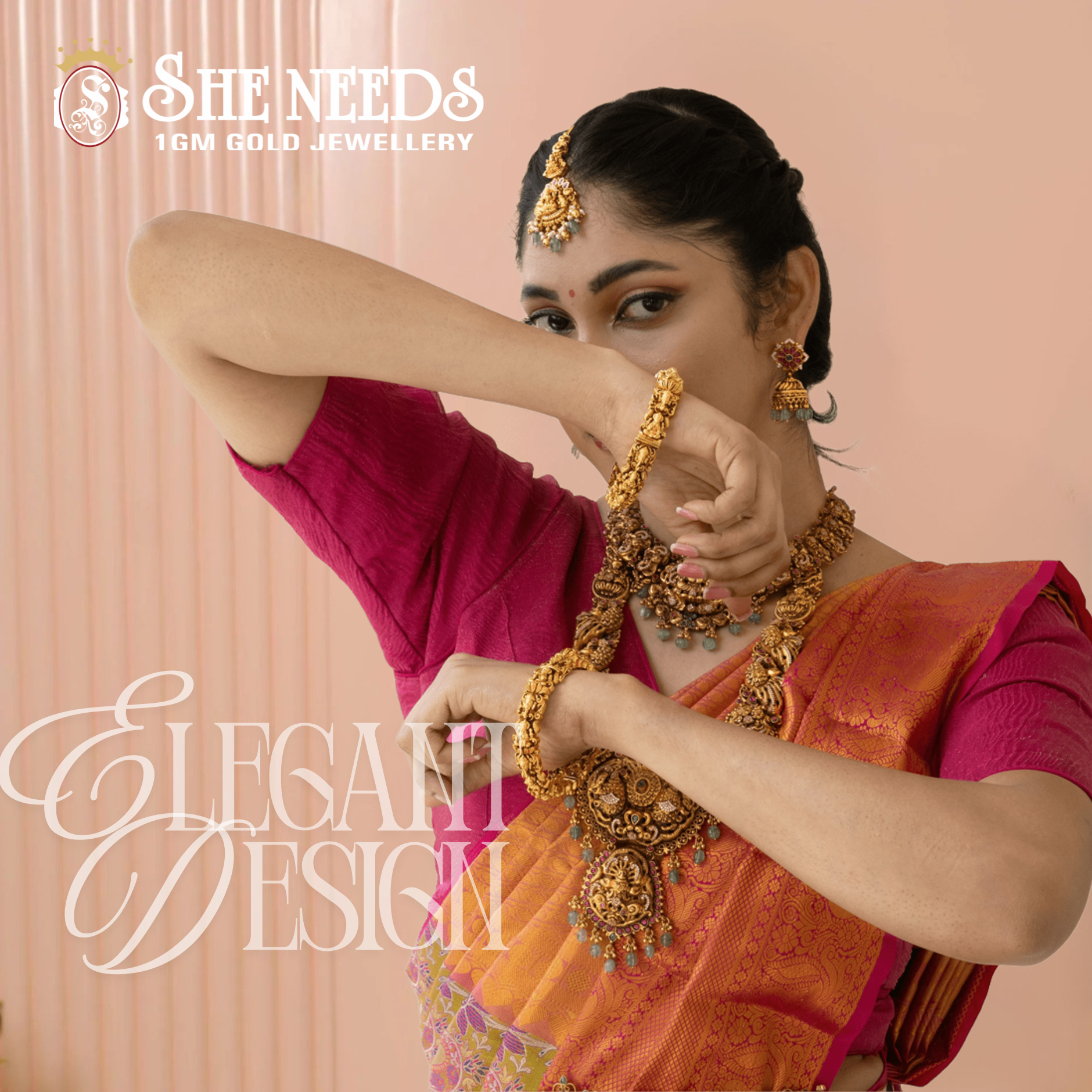 At SHE NEEDS, we believe that jewellery is not just an accessory - it's a statement of confidence, grace, and individuality. Founded in Hyderabad, SHE NEEDS was born from a passion for affordable luxury. We offer a curated collection of premium 1-gram gold and silver jewellery that blends timeless tradition with modern elegance - perfect for everyday wear, special occasions, and everything in between.
