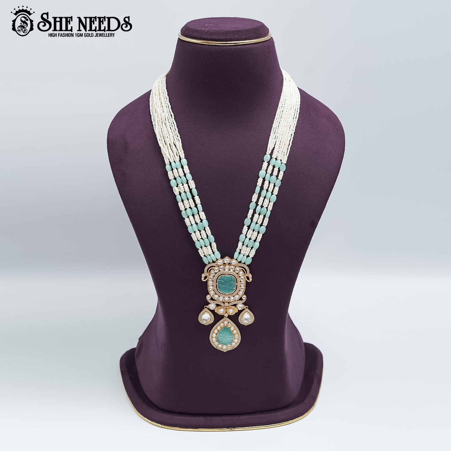 Product Name: Mint Green Stone Kundan Beaded Necklace Set