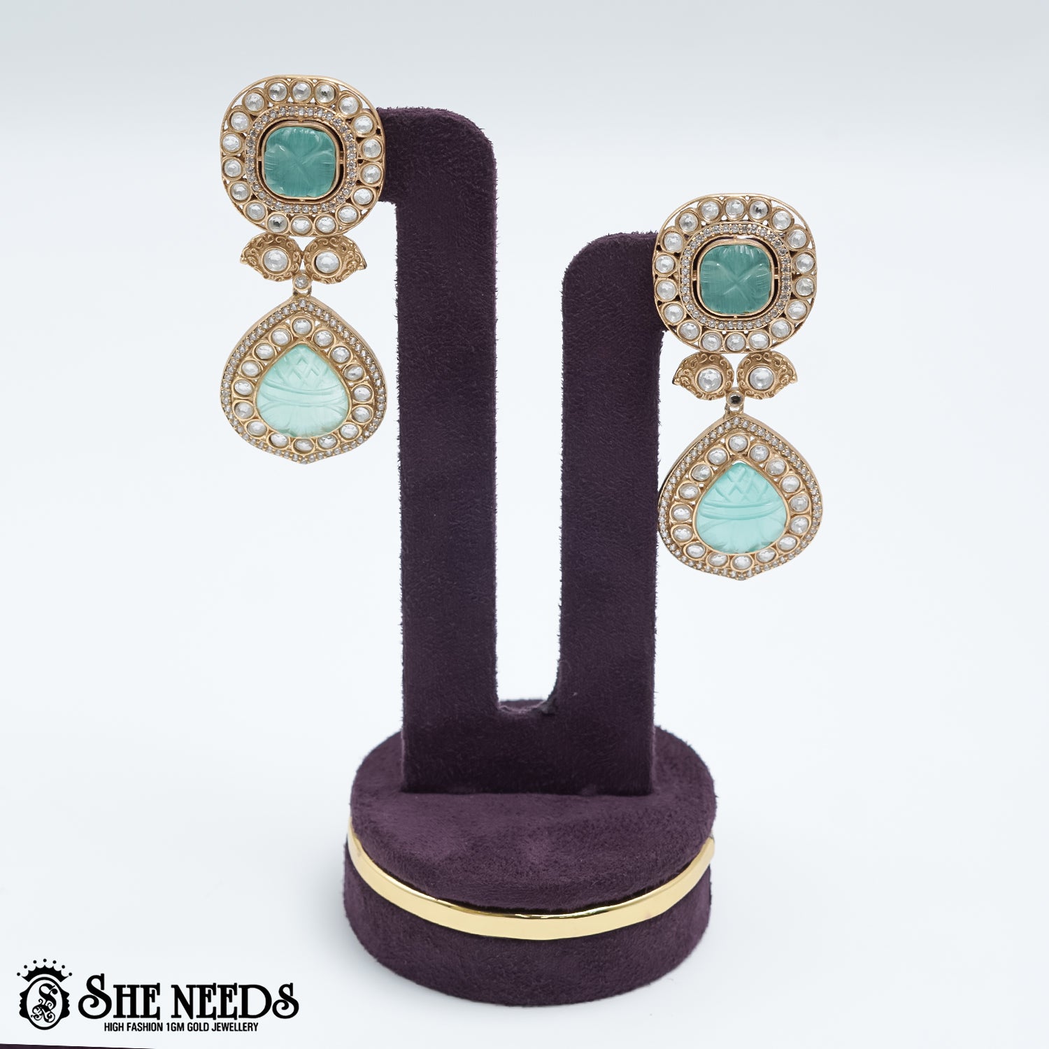 Comes with matching mint green stone drop earrings for a complete ensemble