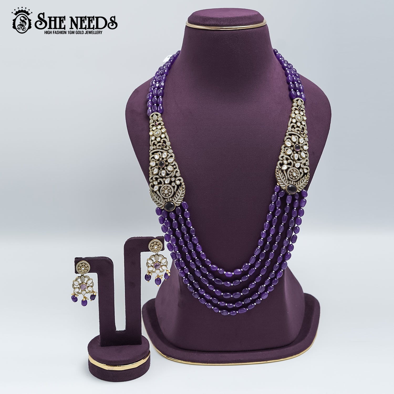 Product Name: Royal Purple Beads Antique Temple Necklace Set