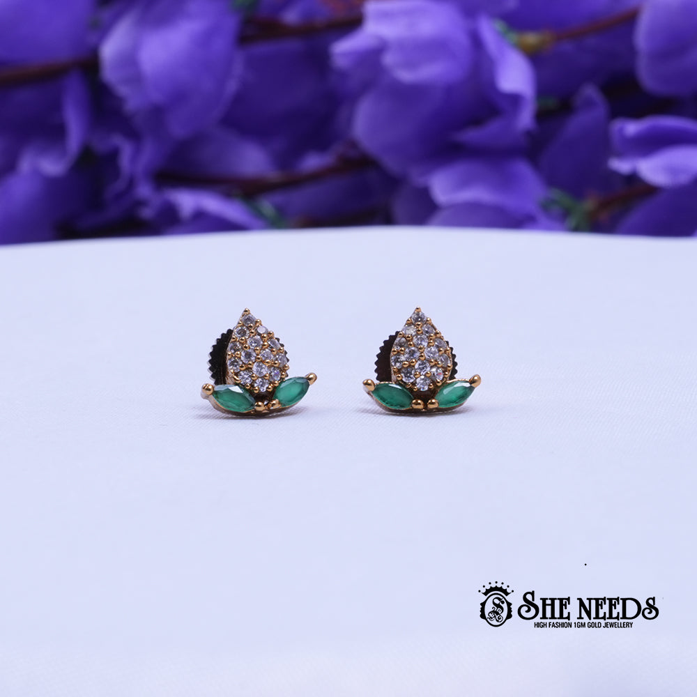 Matching leaf-shaped earrings crafted in gold tone, each pavé-set with sparkling cubic zirconia. Two green marquise stones at the base echo the pendant design, providing vibrant color and cohesive elegance for every occasion.