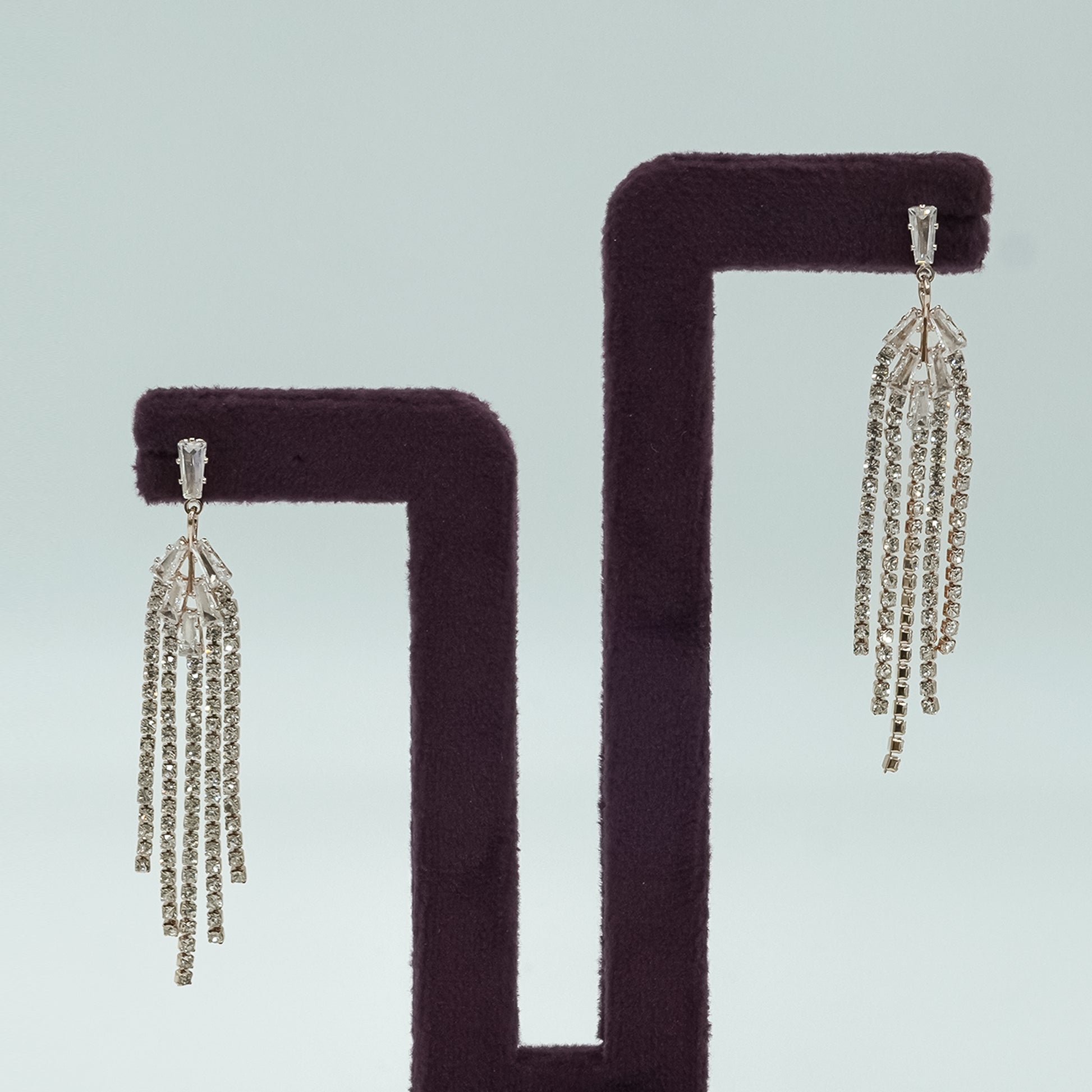 Exude sophisticated allure with these dazzling tassel earrings, featuring cascading streams of crystal-studded strands. Each earring is anchored by a refined, baguette cut accent that gives way to shimmering, delicate chains—creating captivating movement and luxurious shine that’s perfect for making a statement.