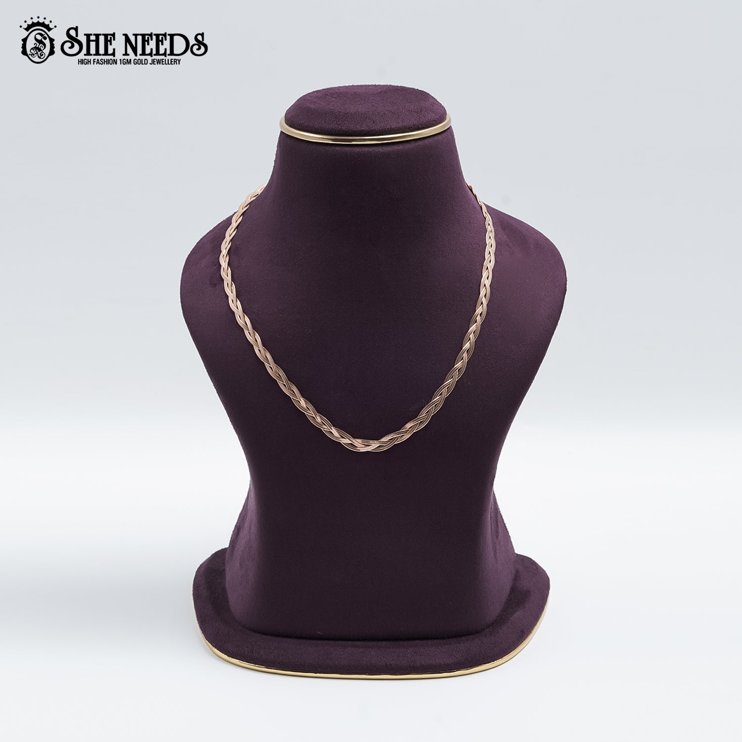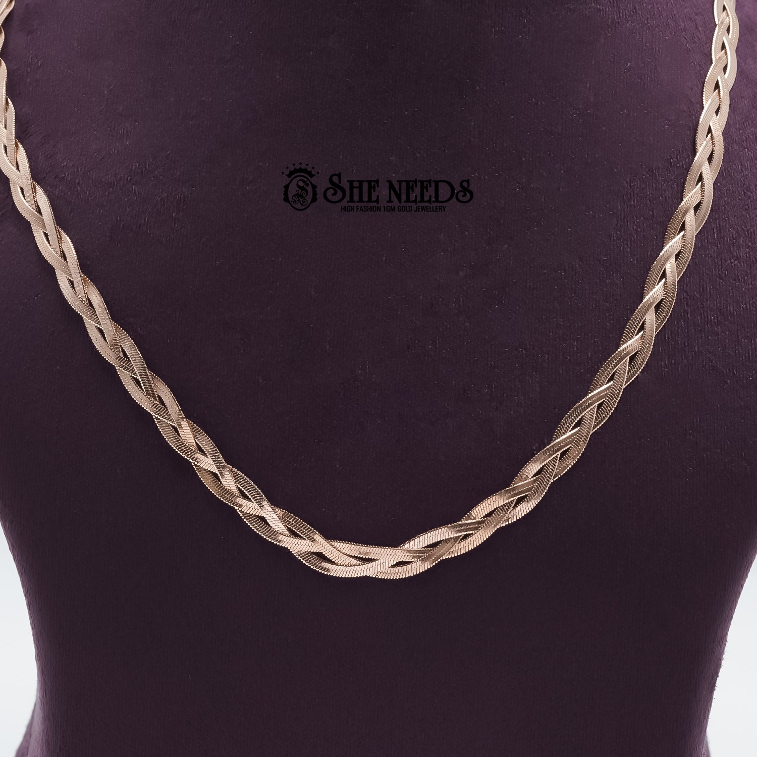 This finely braided gold chain blends intricate craftsmanship with modern minimalism. Designed to complement both casual and formal looks, it’s the perfect accessory to elevate any outfit. Its 1GM gold finish ensures lasting shine and durability, while the lightweight build offers all-day comfort.
