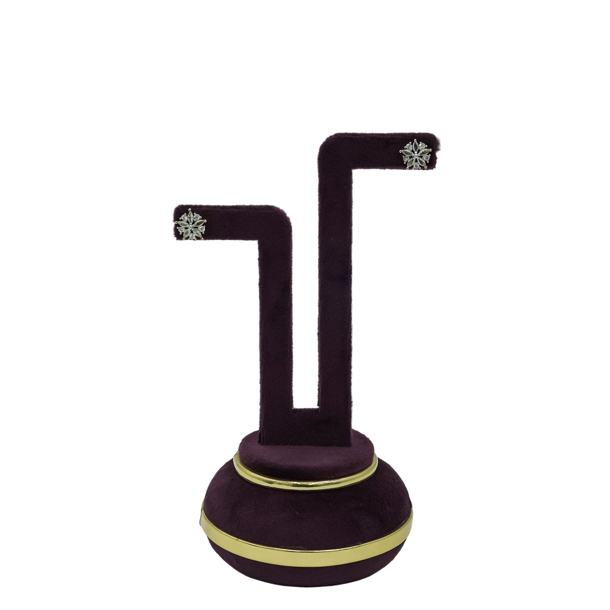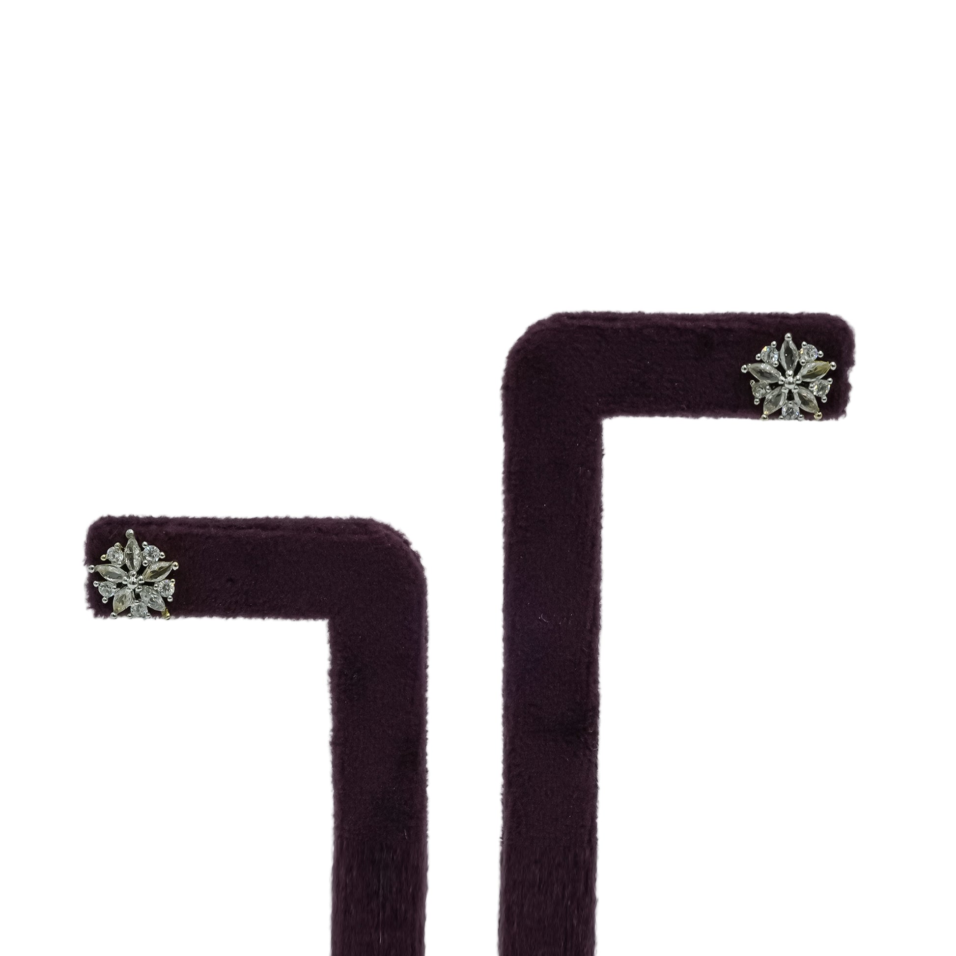 These graceful stud earrings draw inspiration from icy floral patterns, blending petal-shaped stones and radiant crystal accents in a delicate arrangement. The intricate motif evokes the charm of frost-laced blossoms, offering a sophisticated sparkle perfect for both daytime elegance and festive celebrations.