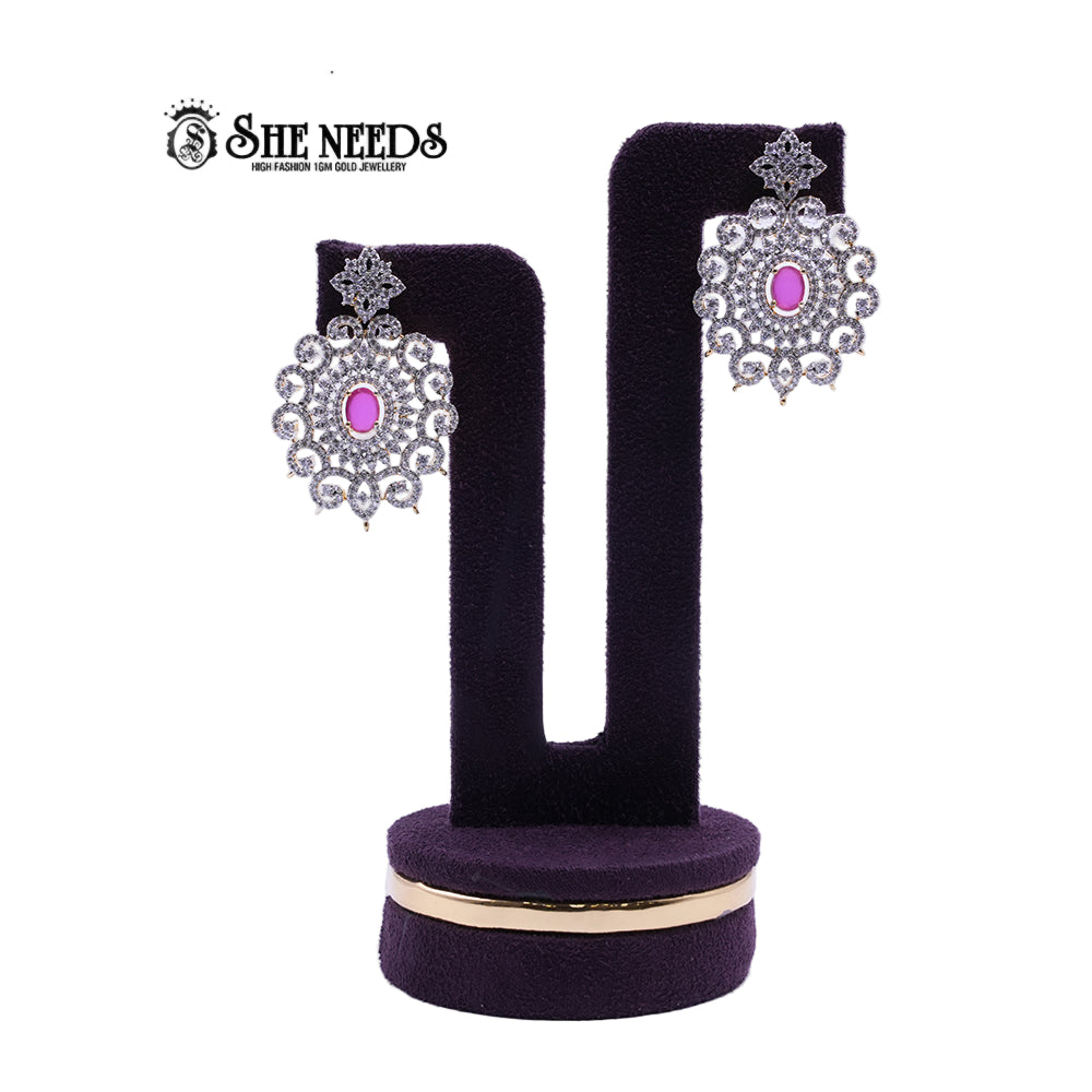 Stylish drop earrings with ruby stone centers and sparkling crystals