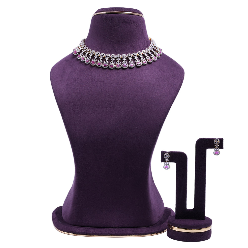 The Regal Blossom Charm Necklace Set is a timeless masterpiece blending luxury with sophistication. Designed in a graceful choker-style, it showcases intricate floral-inspired motifs adorned with shimmering white stones. Each motif is highlighted with enchanting pink stone accents, adding a regal pop of color and charm. Elegant and versatile, this set is the perfect adornment for weddings, festive events, or grand celebrations, elevating your look with effortless elegance.
