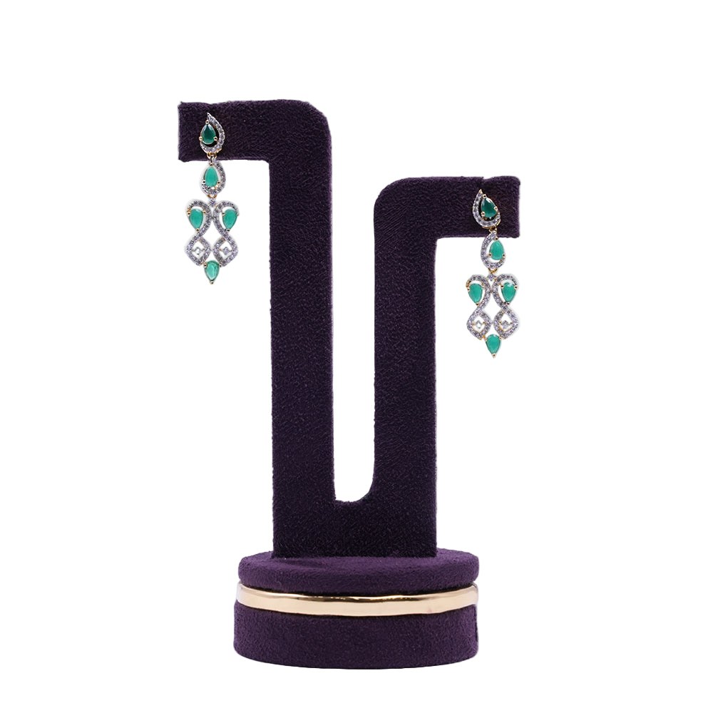 The Emerald Grace Drop Earrings are a stunning blend of modern charm and traditional beauty. Featuring graceful green stones paired with shimmering white accents, these earrings exude sophistication and versatility. Whether worn with the necklace set or styled separately, they make the perfect accessory for adding elegance to any outfit.