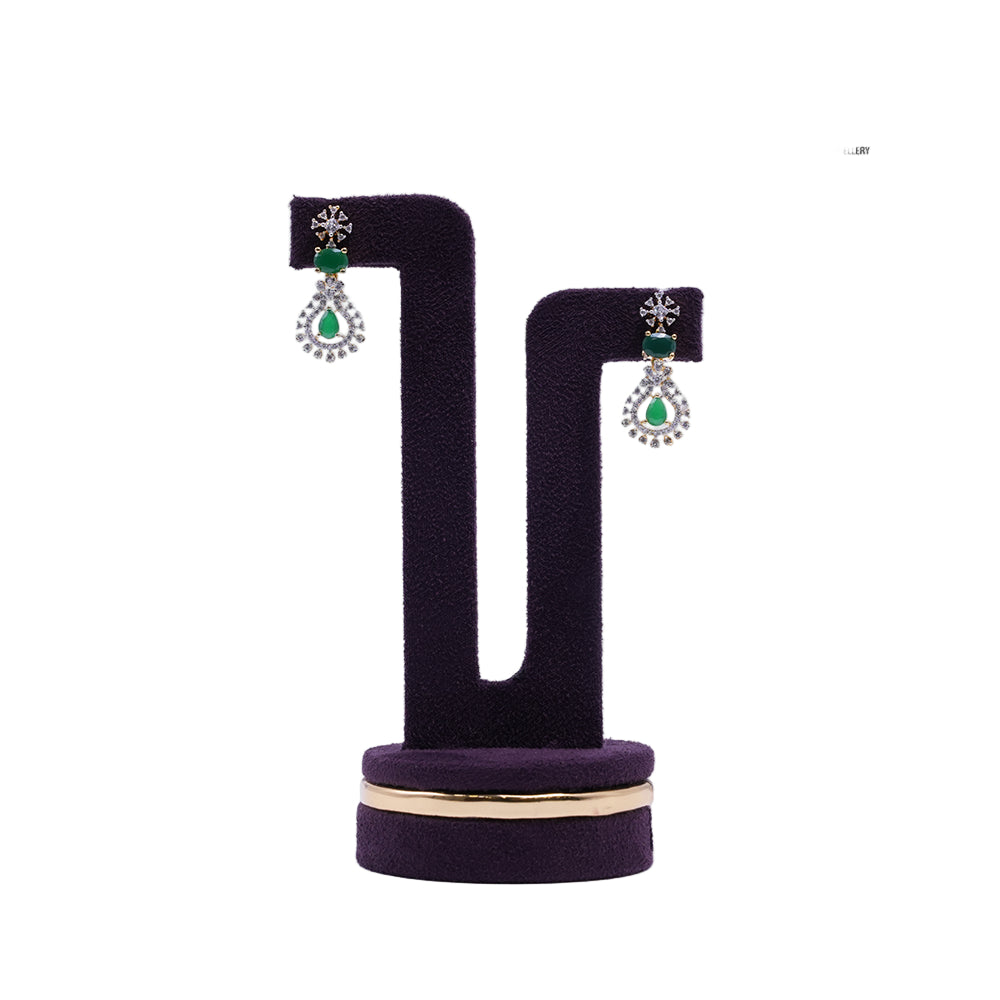 The Regal Emerald Bloom Drop Earrings are crafted to complement elegance with ease. Featuring luminous green stones framed by sparkling white accents, these earrings radiate charm and versatility. Whether styled with the necklace set or worn separately, they add the perfect finishing touch to both traditional and contemporary outfits.