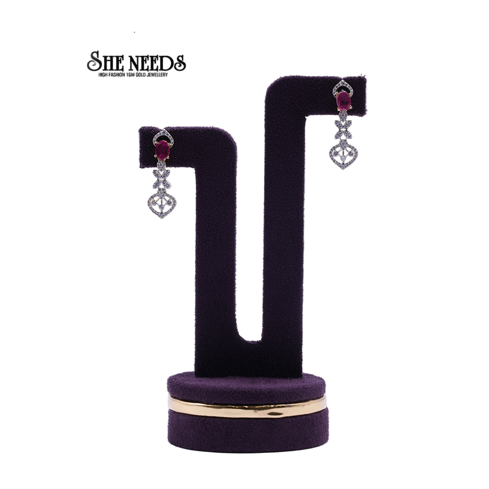 The Ruby Radiance Regal Drop Earrings are the perfect complement to the necklace set. Featuring rich ruby-red stones and sparkling crystals in a graceful drop design, these earrings add timeless charm to your ethnic and festive outfits. Wear them with the necklace for a grand look or style them separately to elevate your everyday ethnic wear.