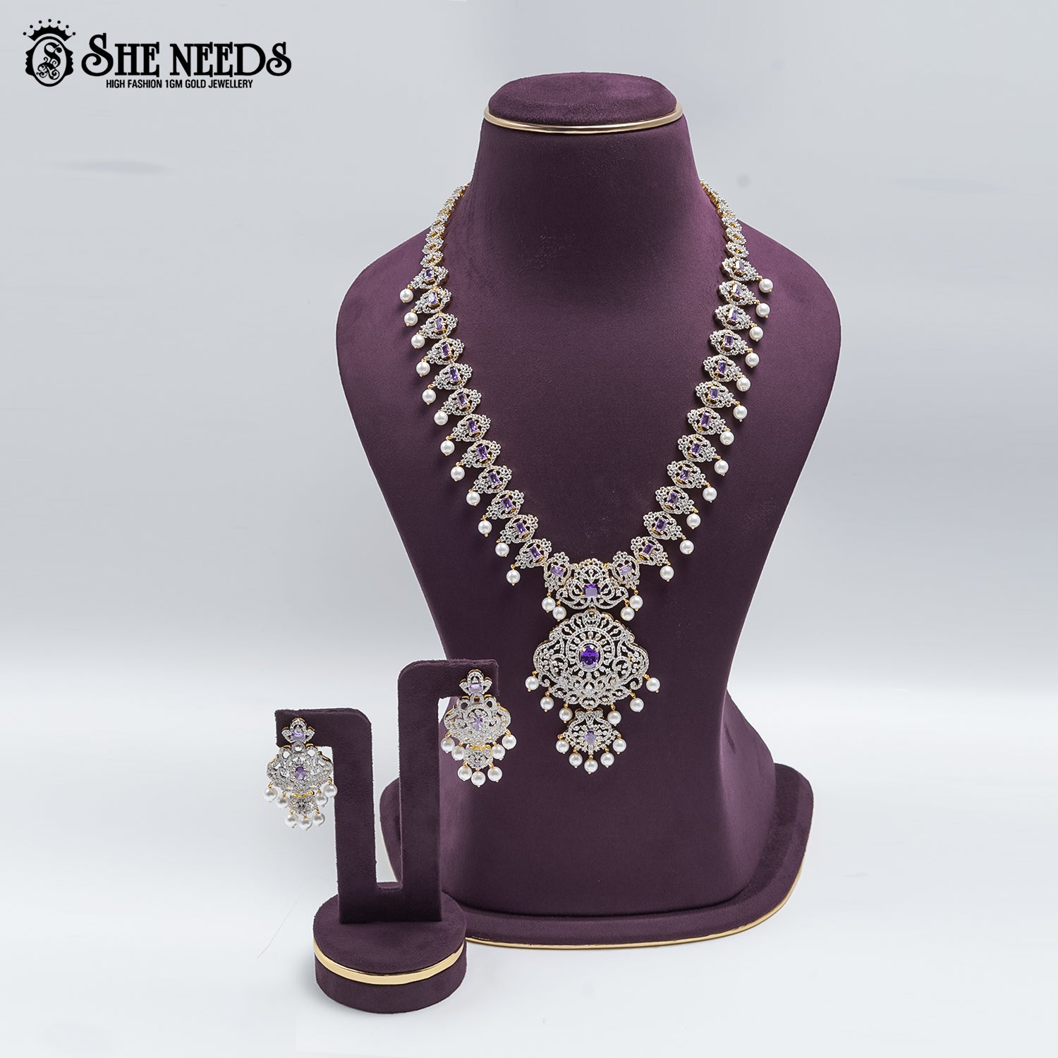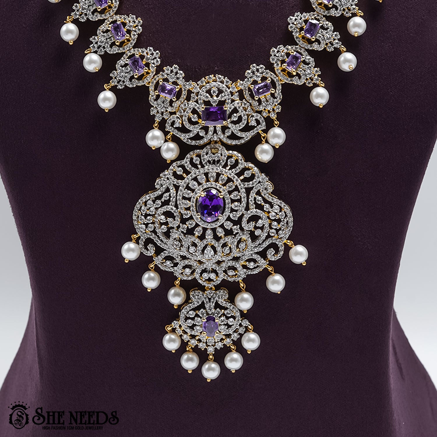 Product Name: Amethyst Aura Kundan Pearl Necklace Set