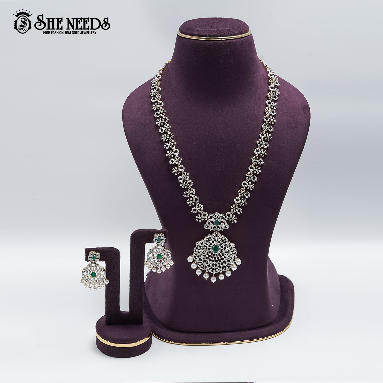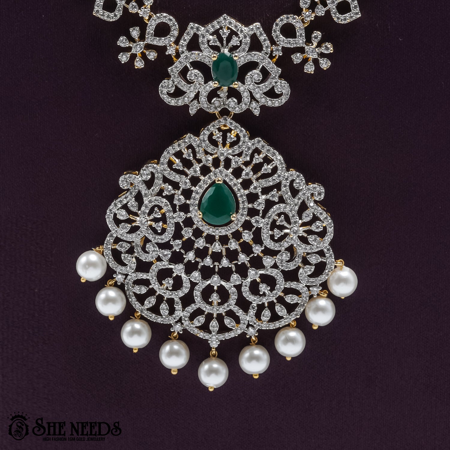 Product Name: Ruby Radiance Diamond Pearl Necklace Set