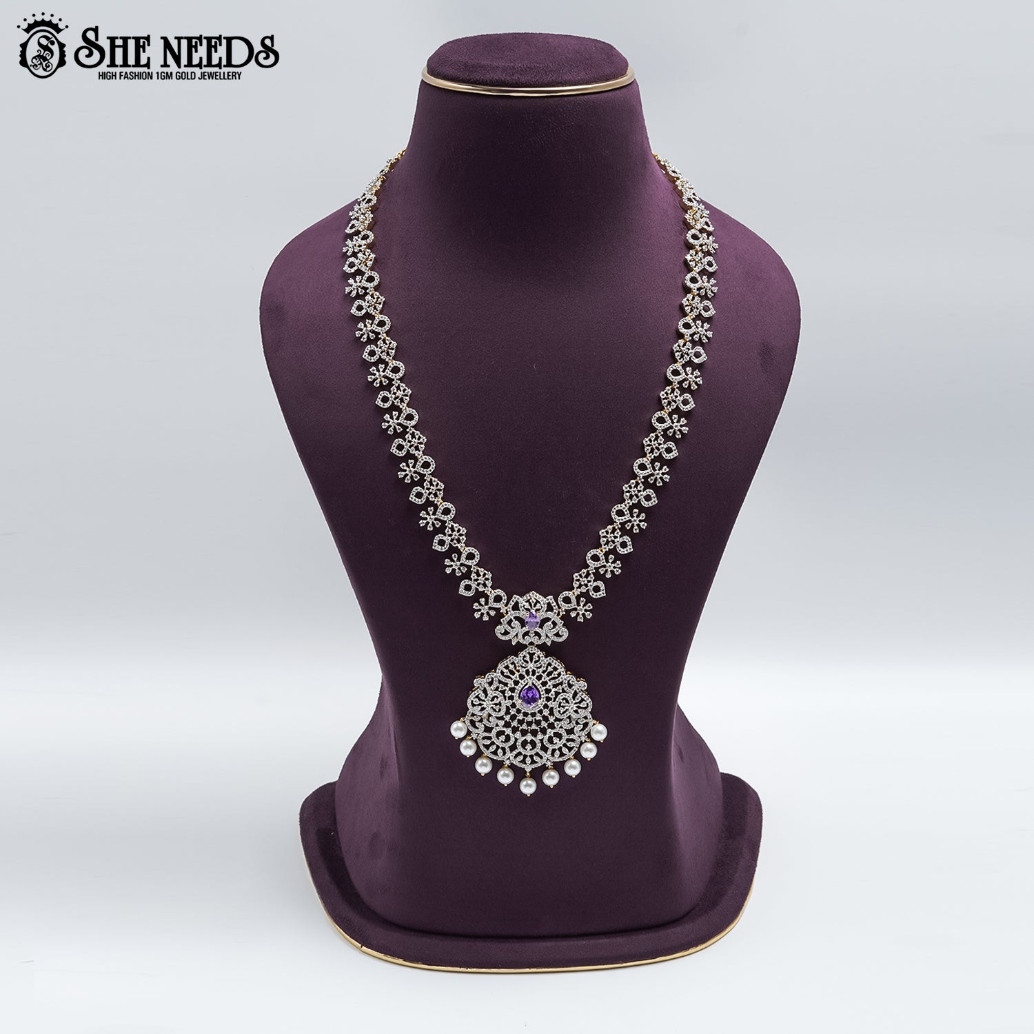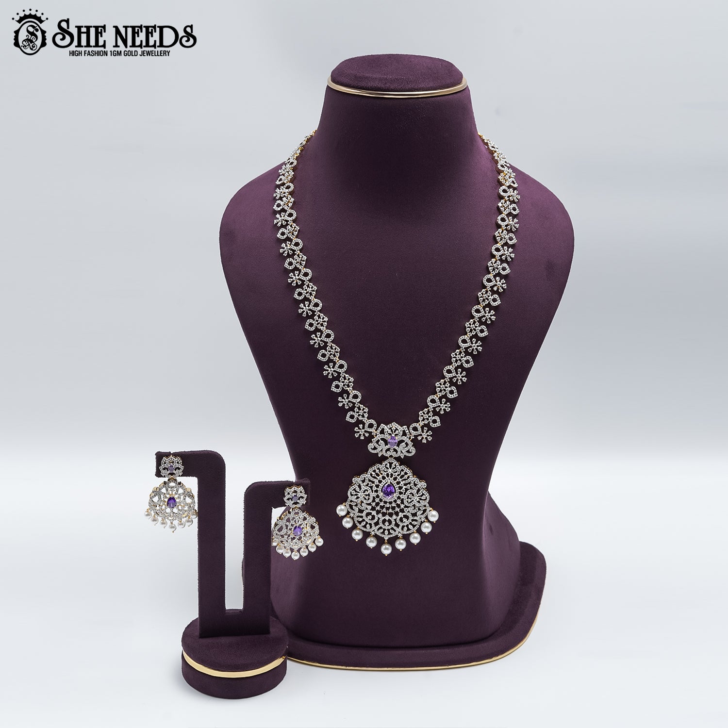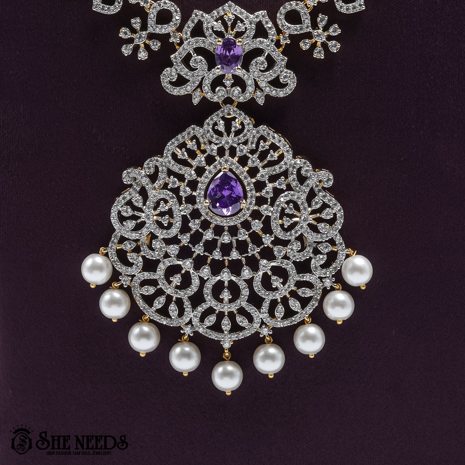 Product Name: Amethyst Glow Diamond Pearl Necklace Set