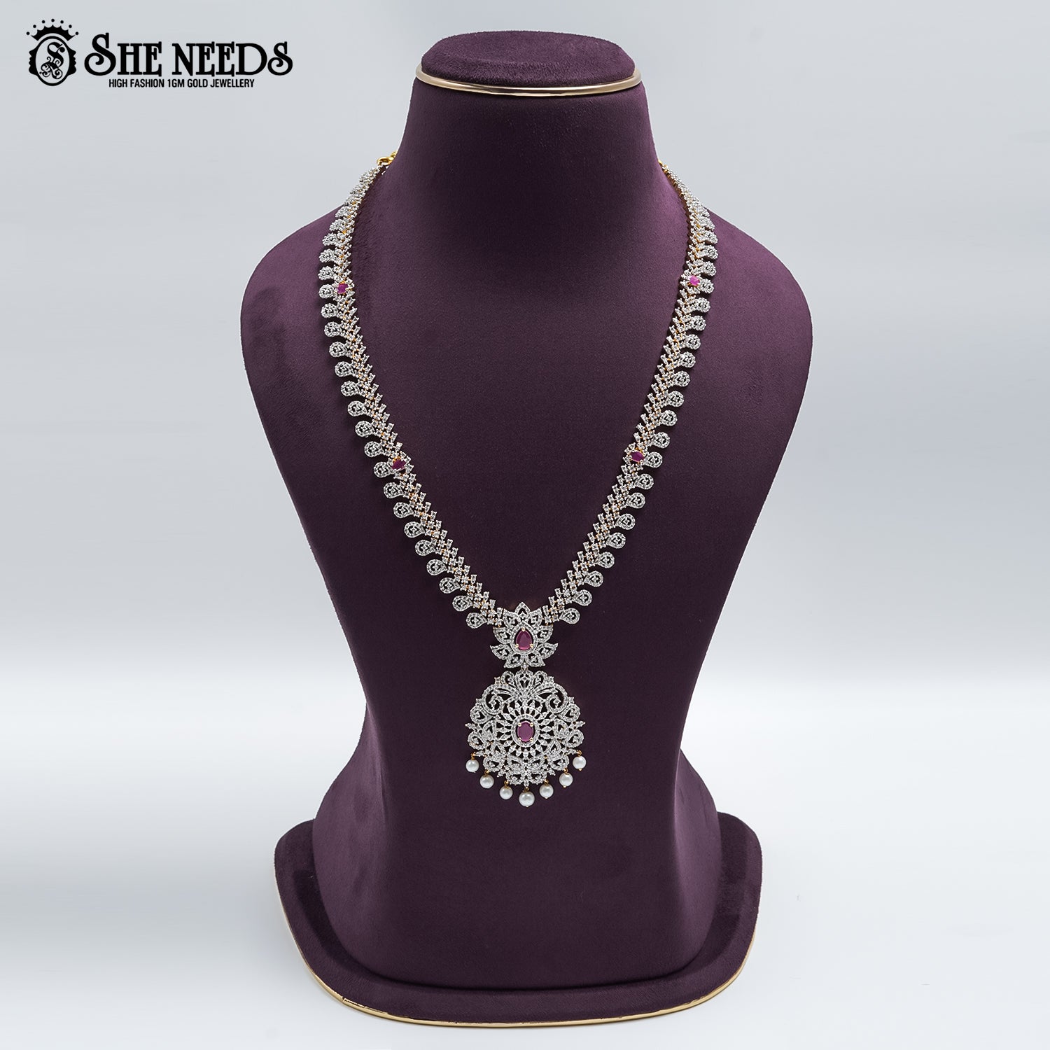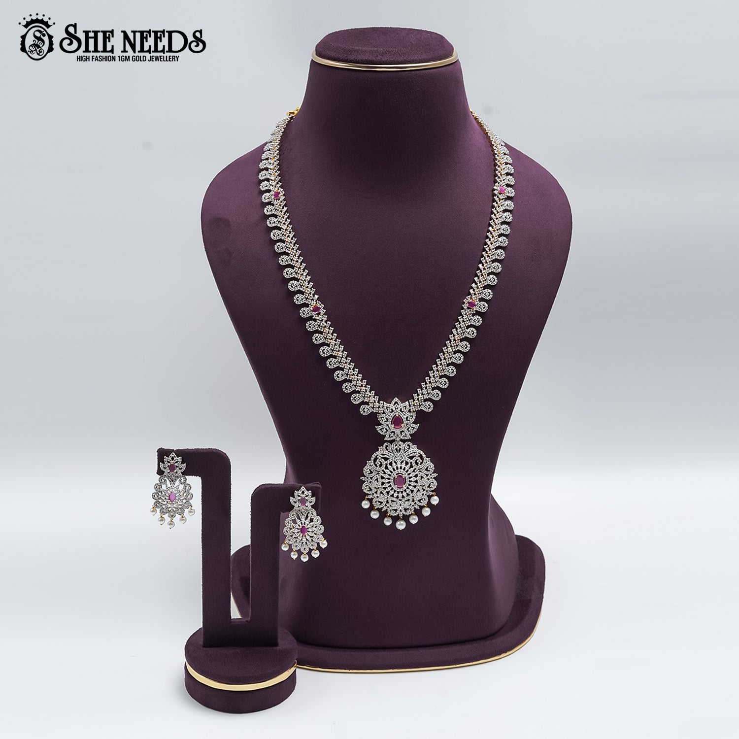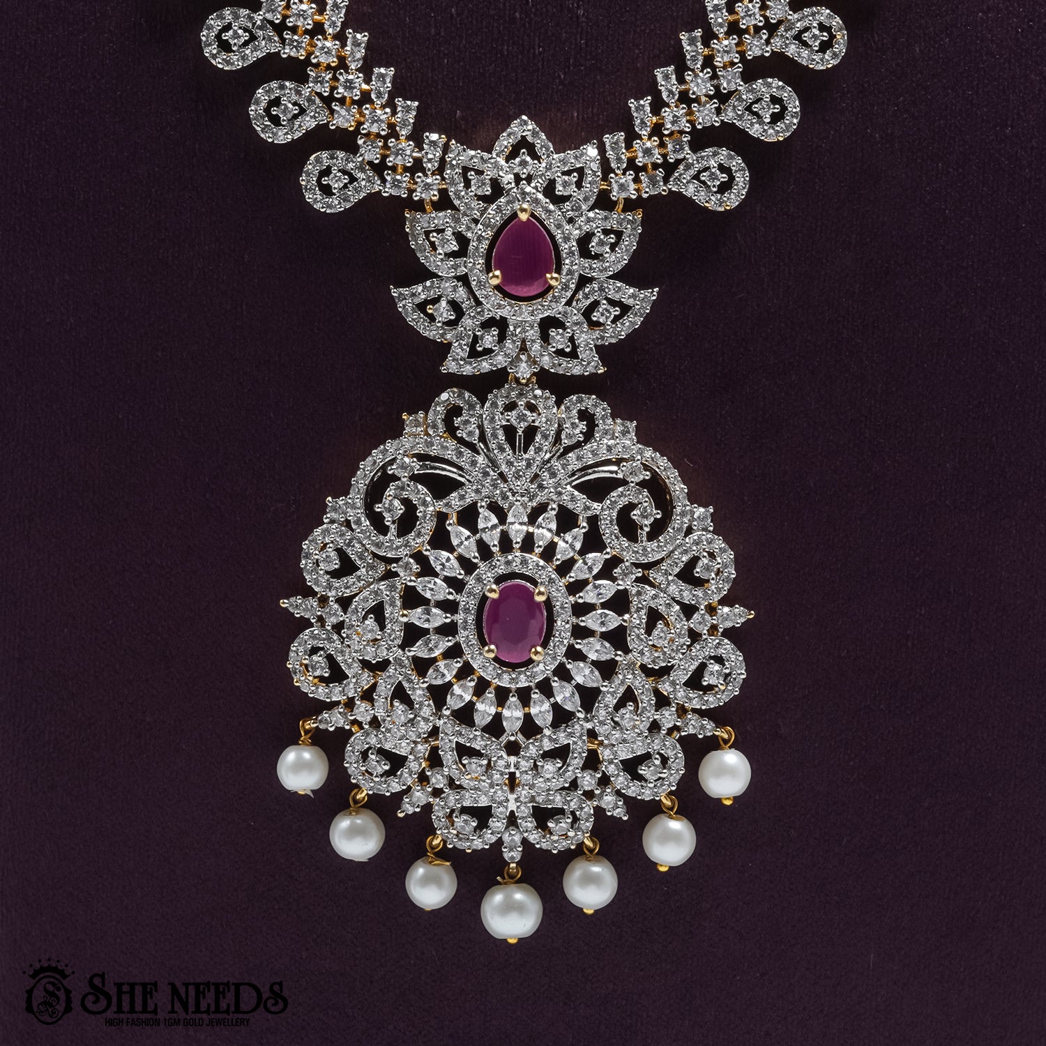 Product Name: Ruby Radiance Diamond Pearl Necklace Set