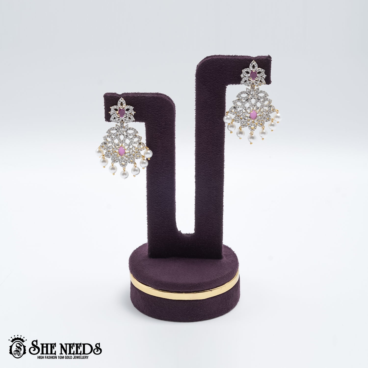 Product Name: Ruby Royale Diamond Pearl Drop Earrings