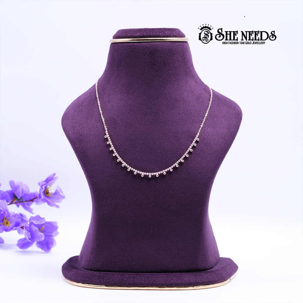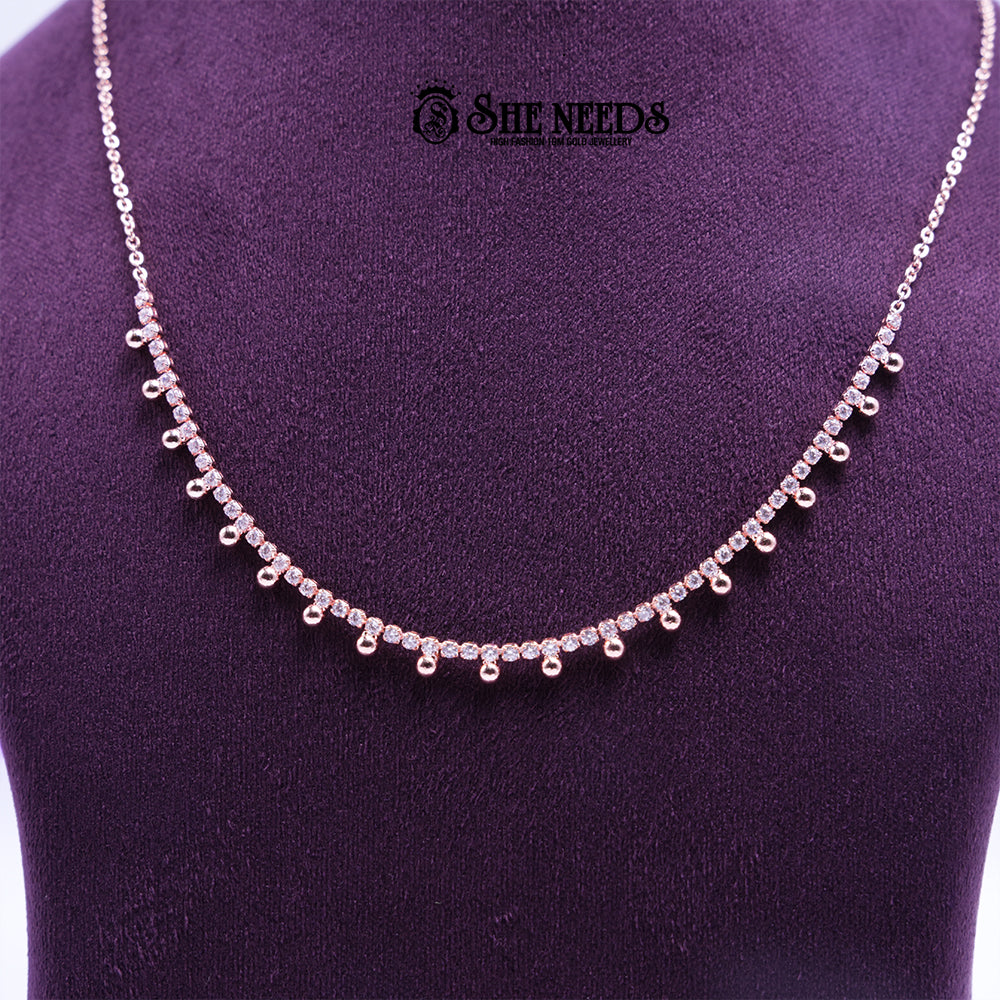 A refined silver necklace featuring delicate round drop accents, elegantly lined on a row of shimmering stones. This graceful piece delivers versatile sparkle, perfect for both casual elegance and festive styling.