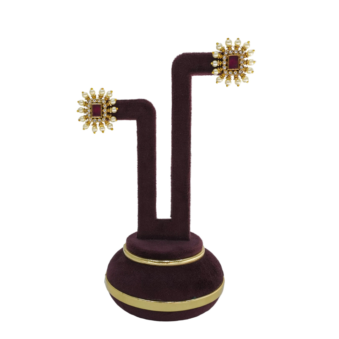Radiate regal elegance with the Royal Ruby Pearl Stud Earrings — a perfect blend of traditional charm and luxurious sophistication. Featuring a striking red ruby-like centerpiece surrounded by glimmering cubic zirconia and delicate pearl accents, these studs evoke timeless beauty. Ideal for weddings, festive occasions, or grand celebrations.