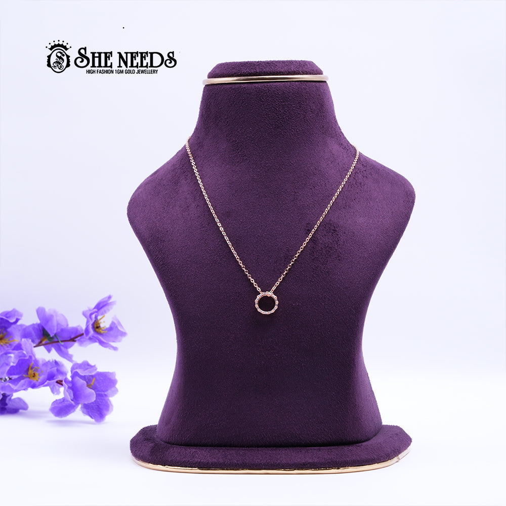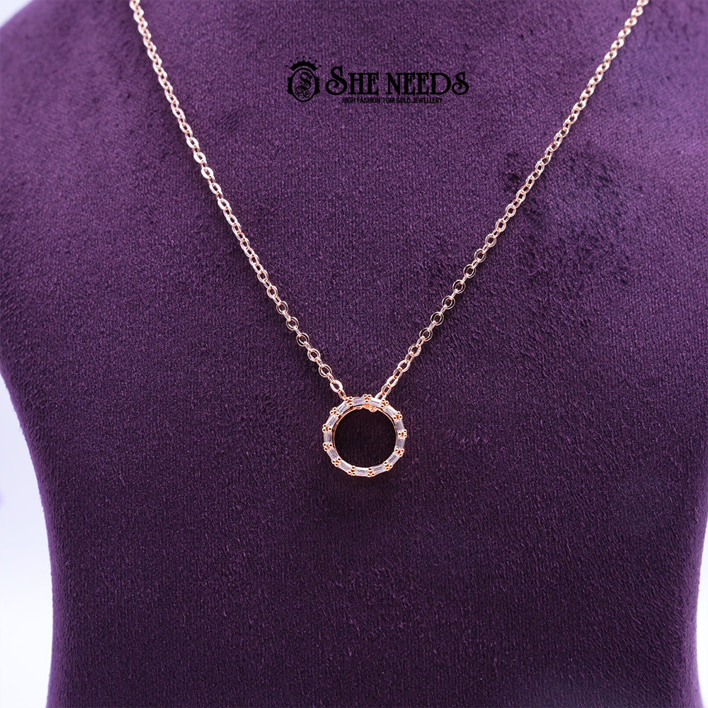 A minimal and classic rose gold necklace featuring a radiant circular pendant set on a slim, adjustable chain. This versatile design offers understated shine—perfect to elevate daily wear or complement festive ensembles.