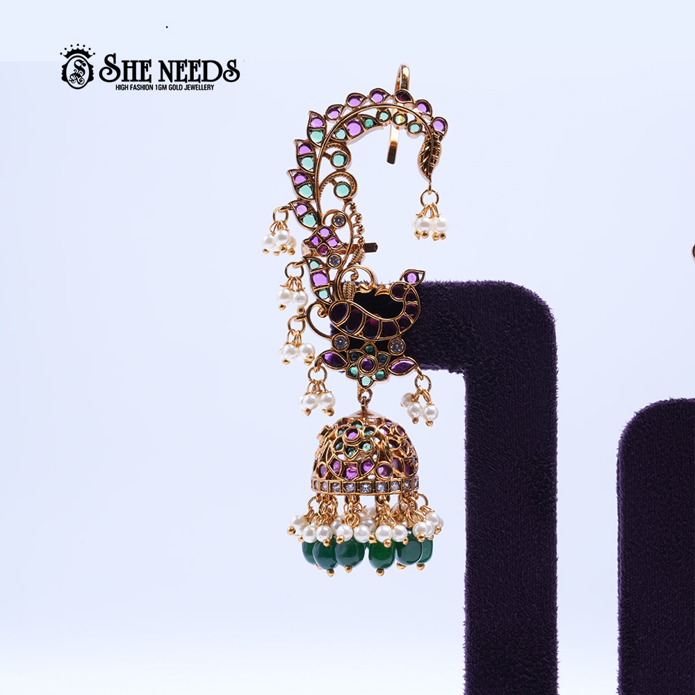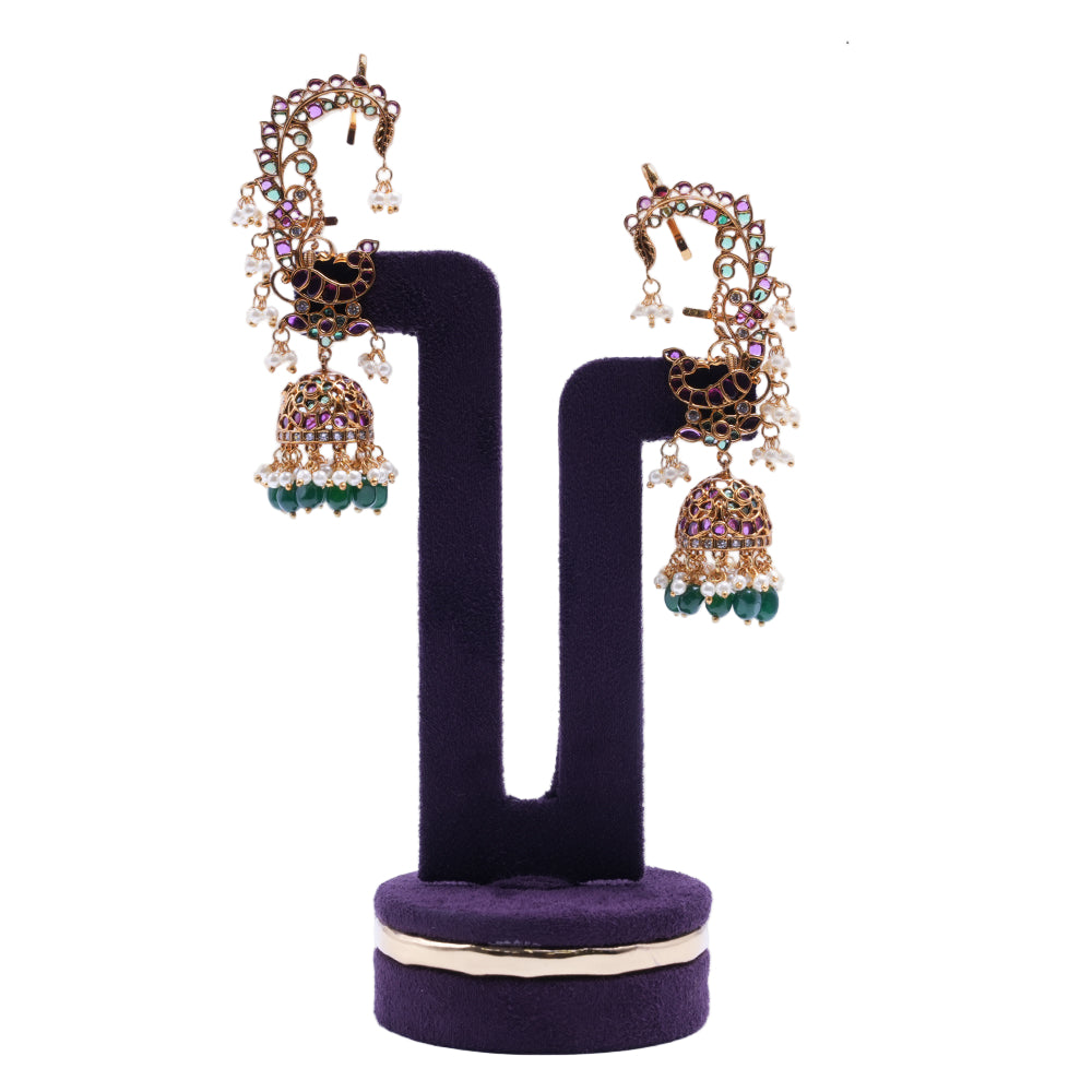 Product Name: Majestic Peacock Ruby Emerald Jhumka Earrings