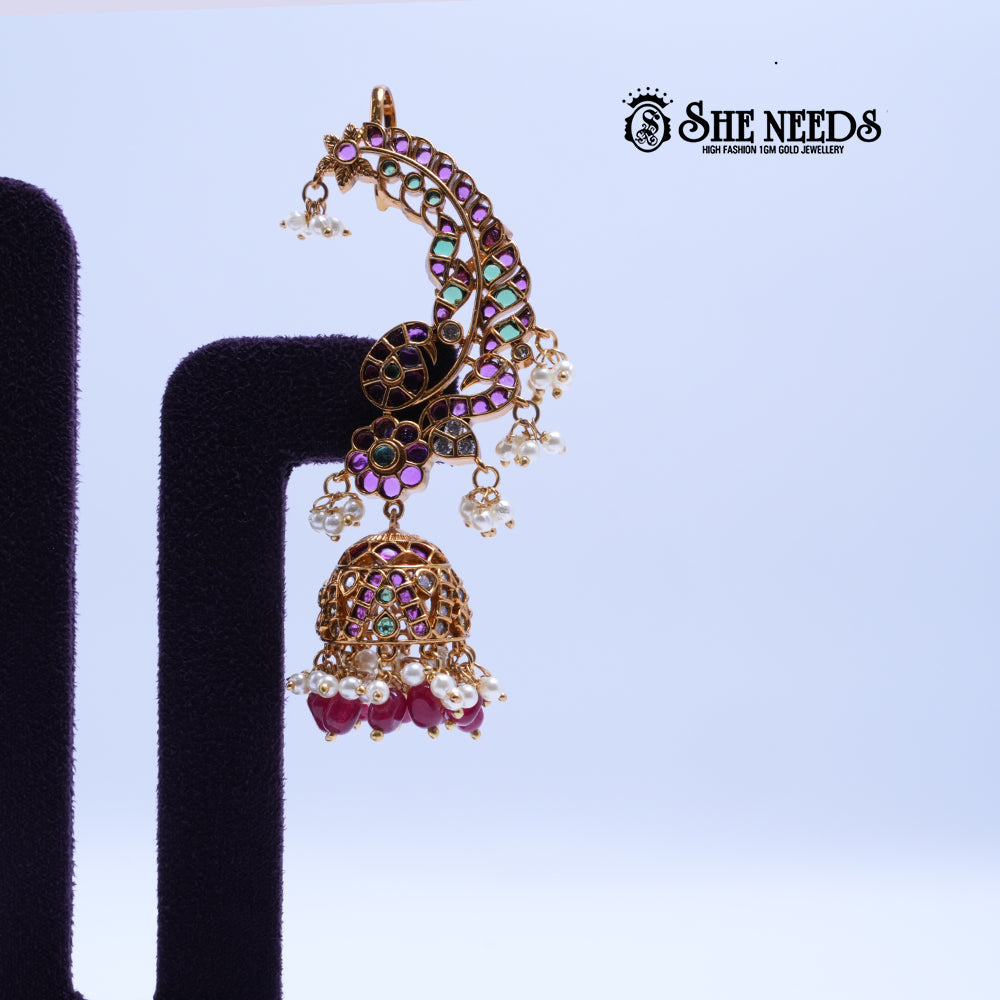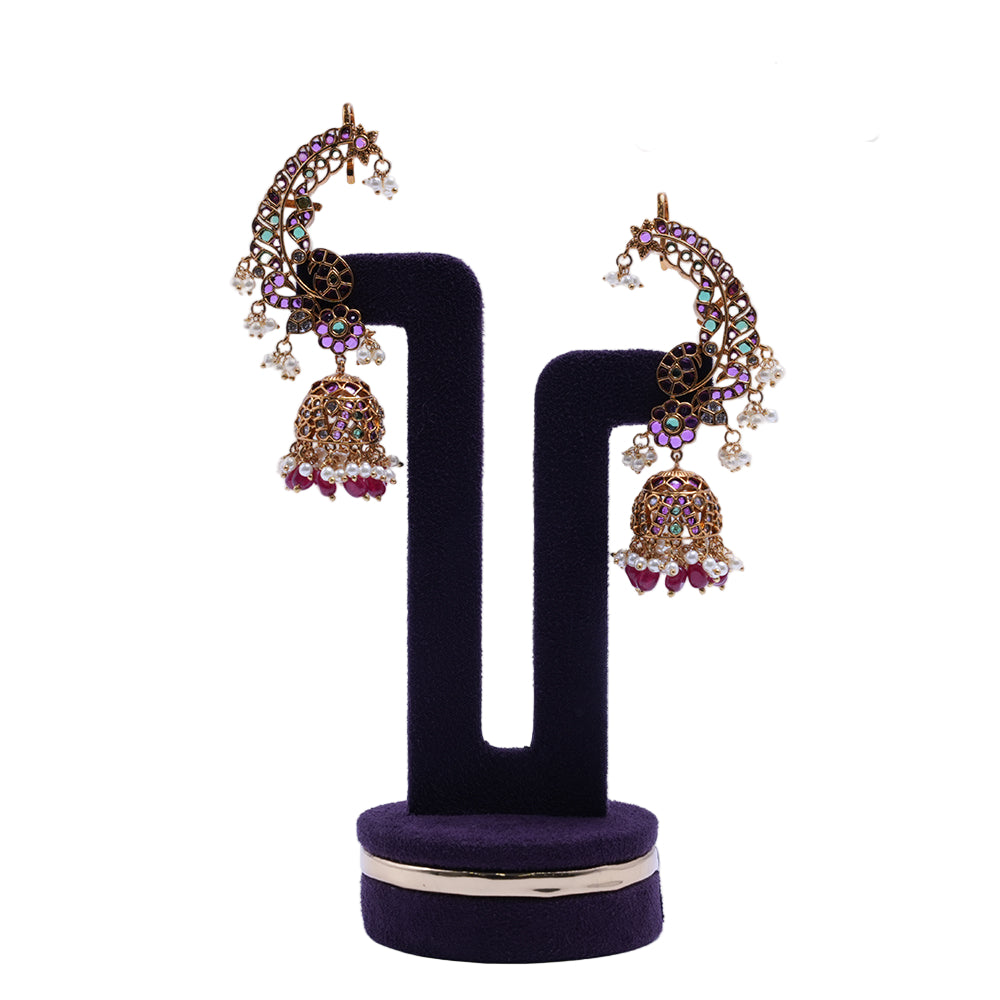 Product Name: Royal Peacock Crescent Jhumka Earrings