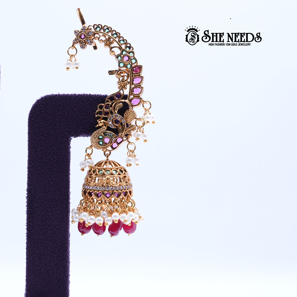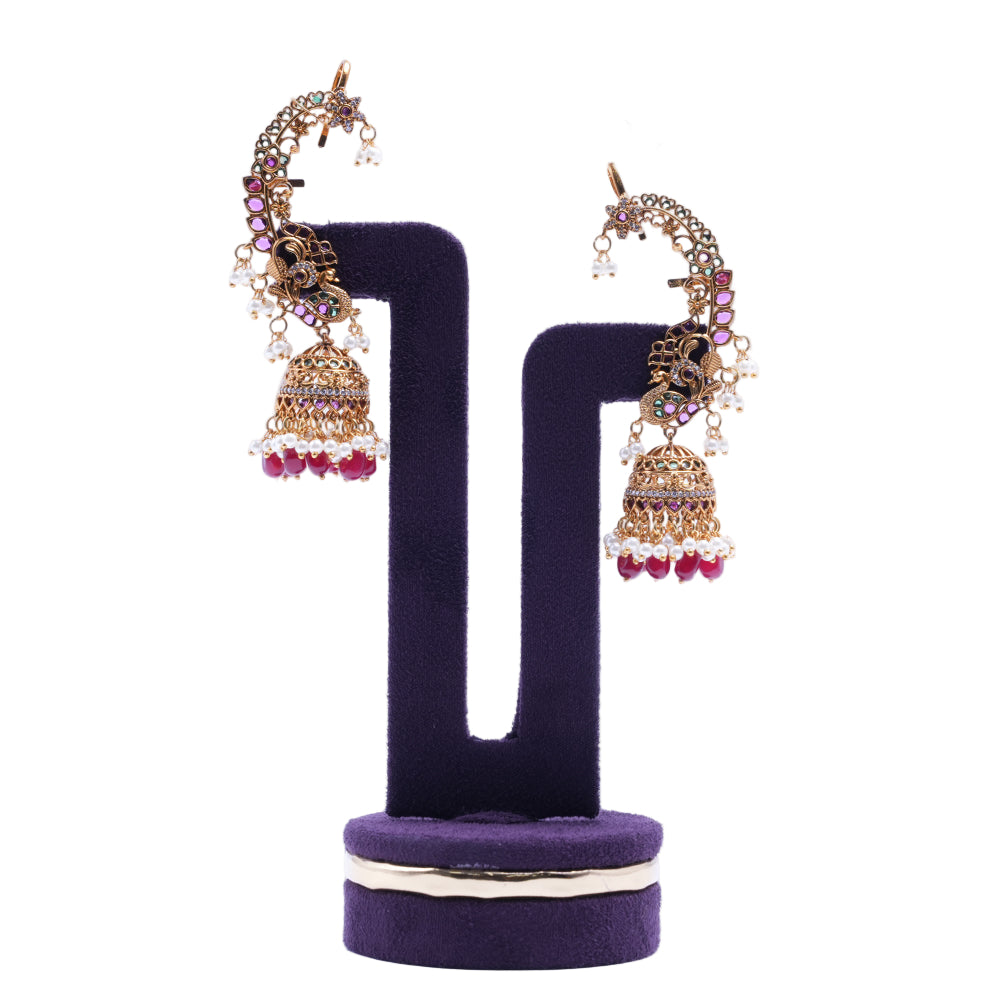 Product Name: Majestic Twin Peacock Ruby Jhumka Earrings