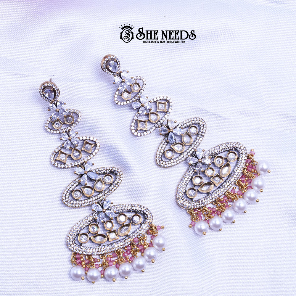 - Earring Details: Long cascading multi-layered dangler with secure push-back closure