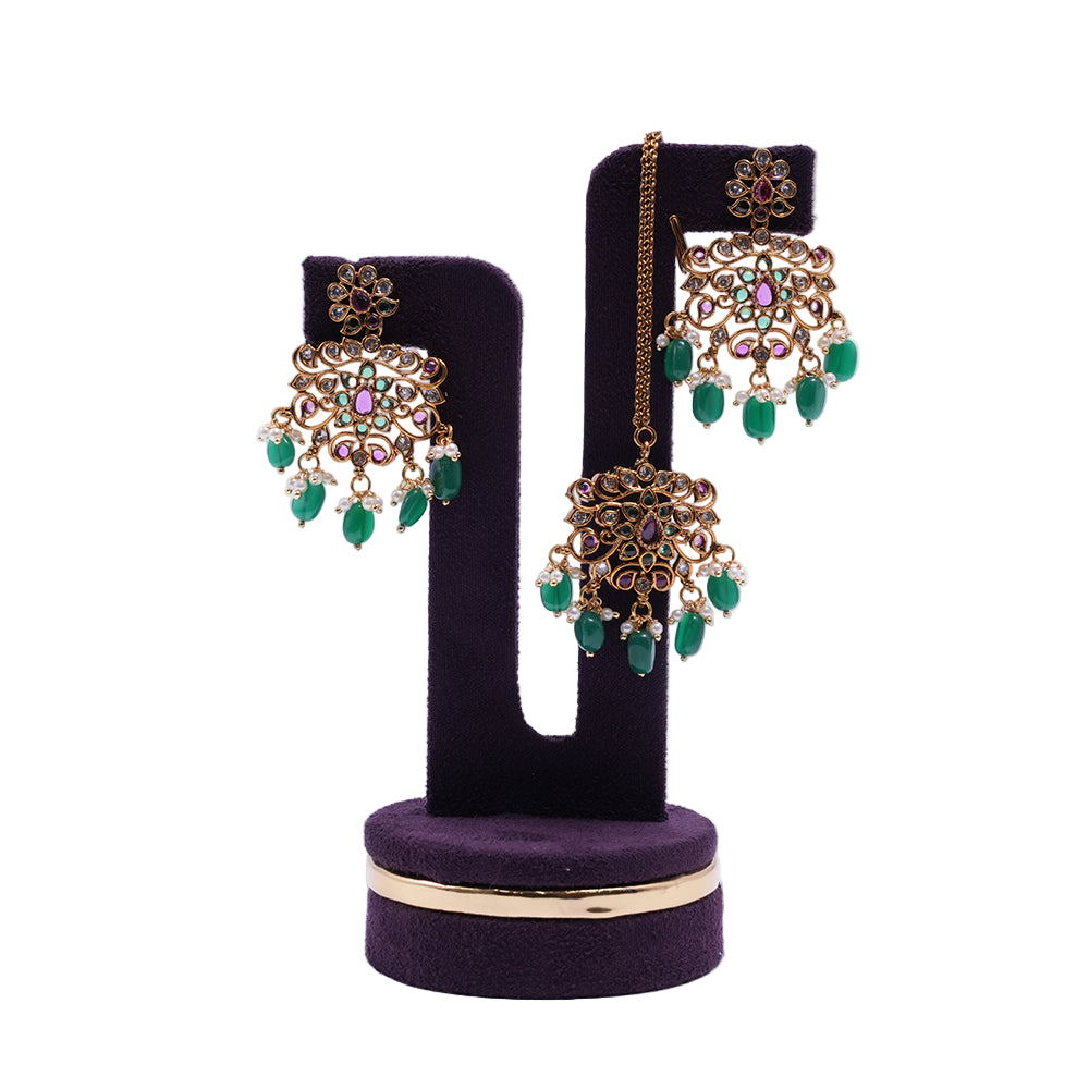 Complements the Royal Peacock Temple Necklace Set for a cohesive ensemble