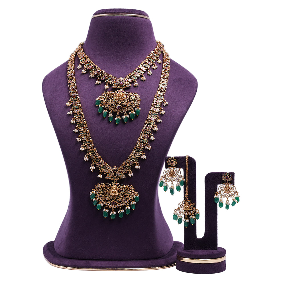 Product Name: Divine Lakshmi Peacock Emerald Necklace Set