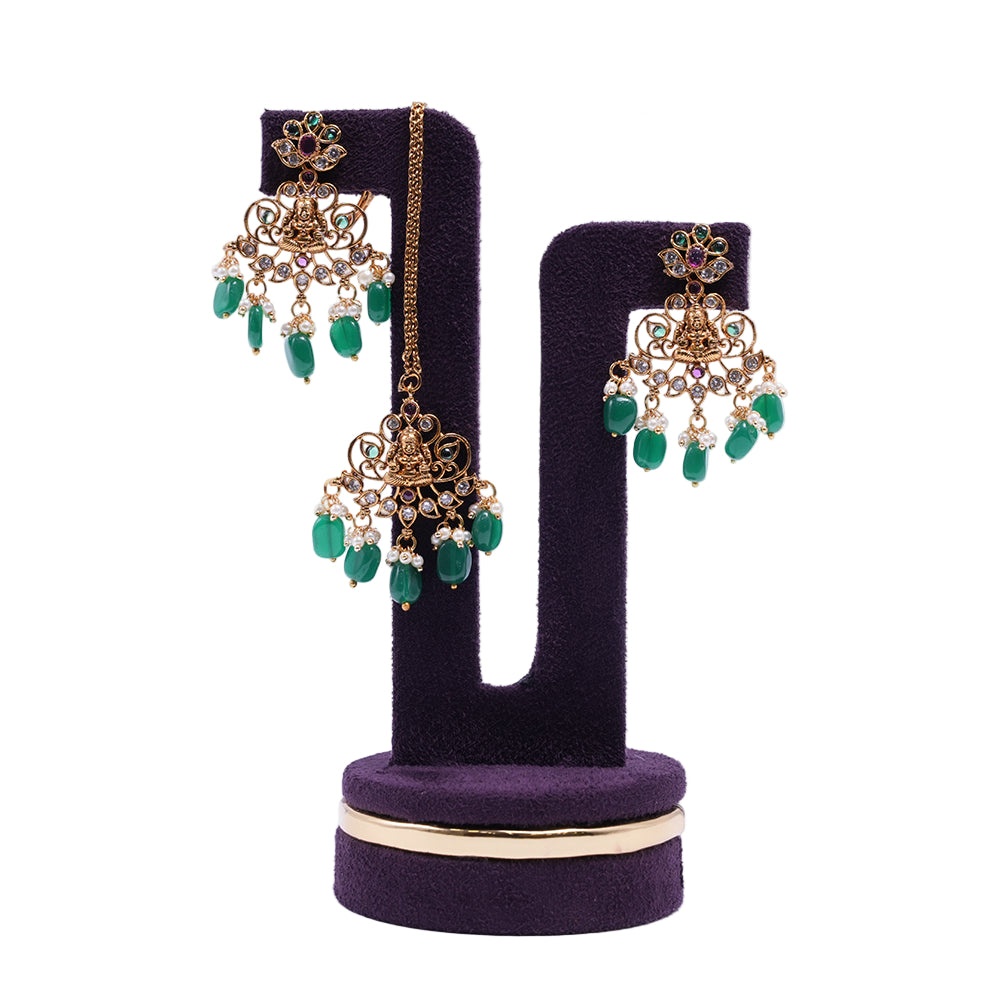 Perfectly complements the Divine Lakshmi Peacock Emerald Necklace Set