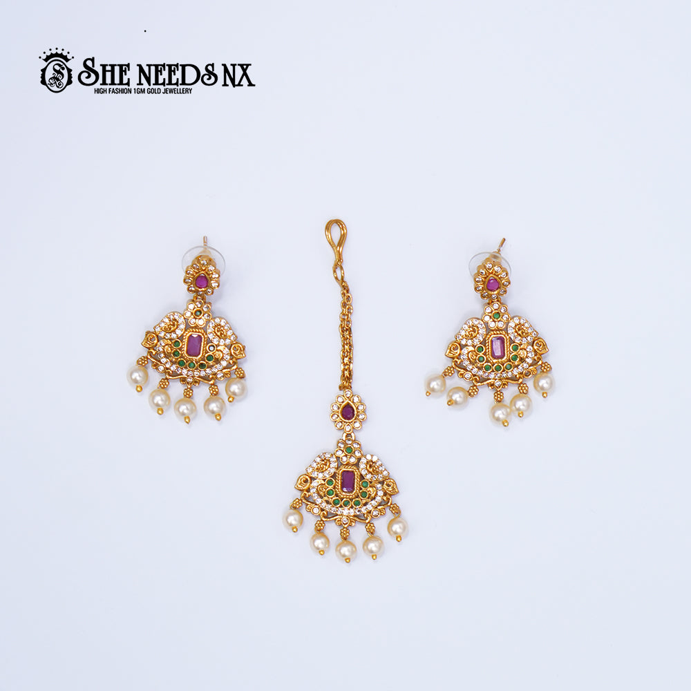 Product Name: Heritage Pearl Drop Bridal Earrings & Tikka
