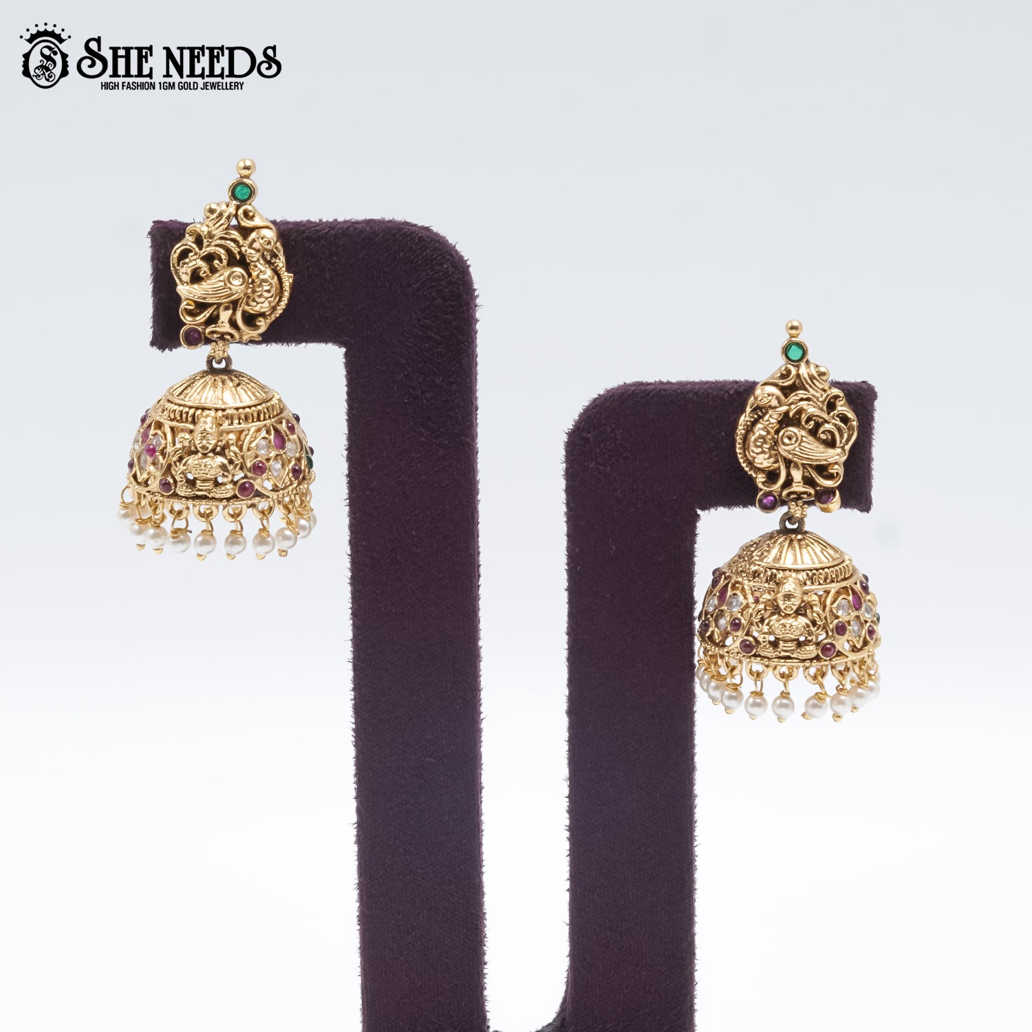Product Name: Divine Peacock Temple Jhumka Earrings