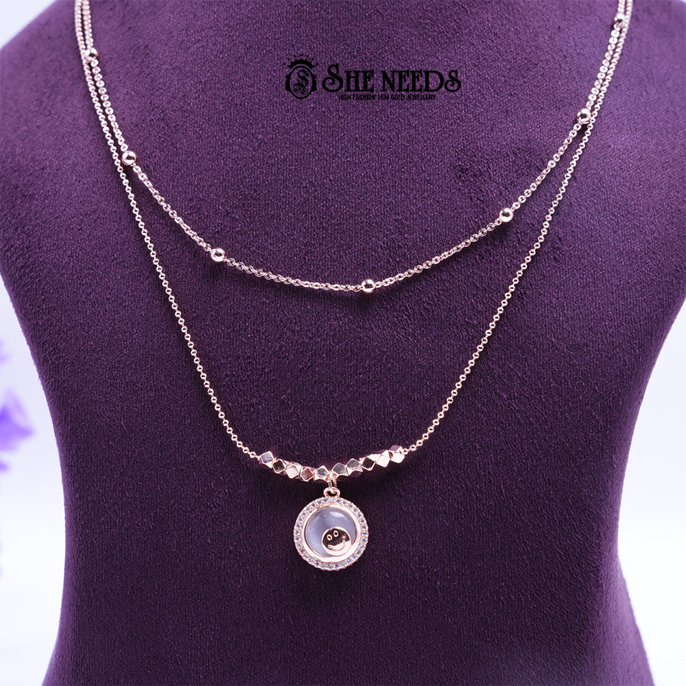 - Necklace Details: Adjustable, Double-Layered Chain