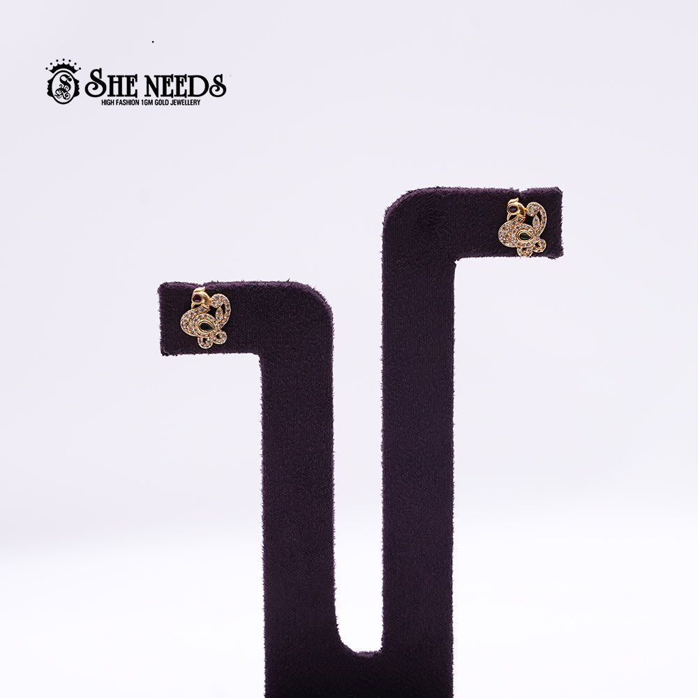 Delicate yet eye-catching, these floral motif earrings with American diamond inlays are crafted for everyday elegance or to complement traditional sets seamlessly.
