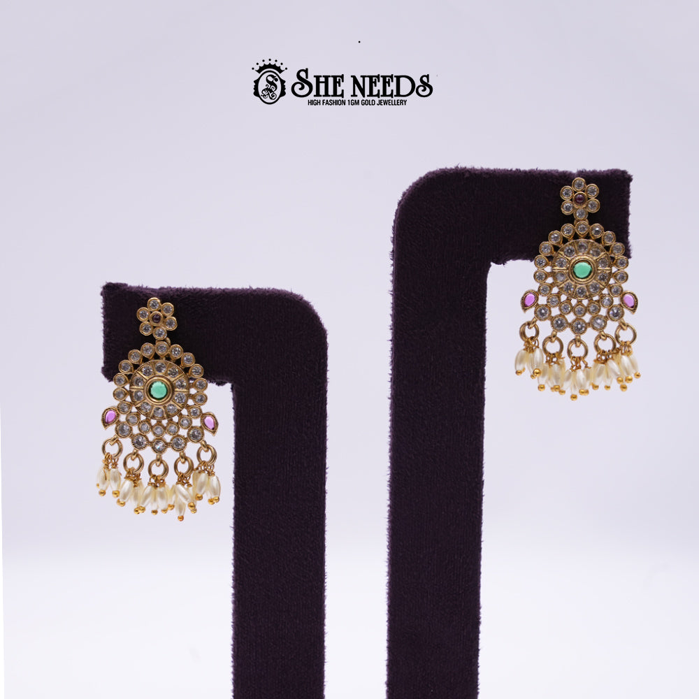 - Features: CZ brilliance, delicate pastel stones, layered pearls, floral design