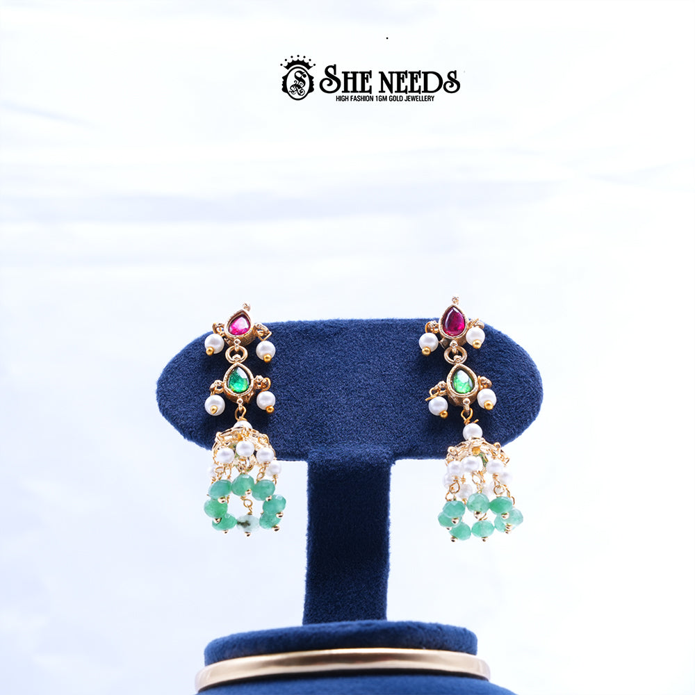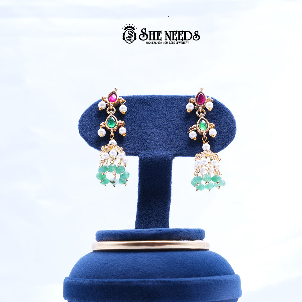 Product Name: Ruby-Emerald Pearl Mini Jhumkas