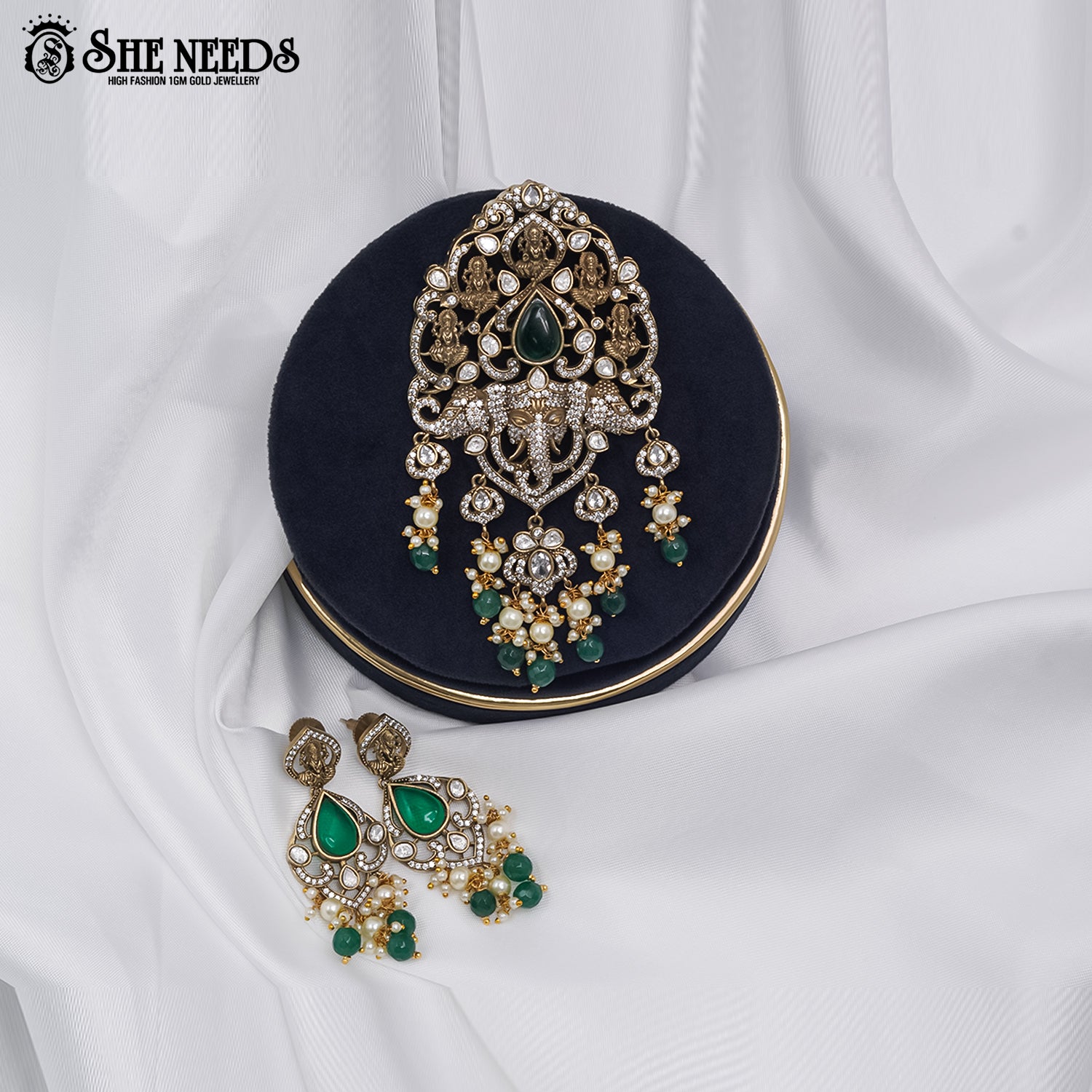 Product Name: Enchanted Emerald Ganesha Brooch Set
