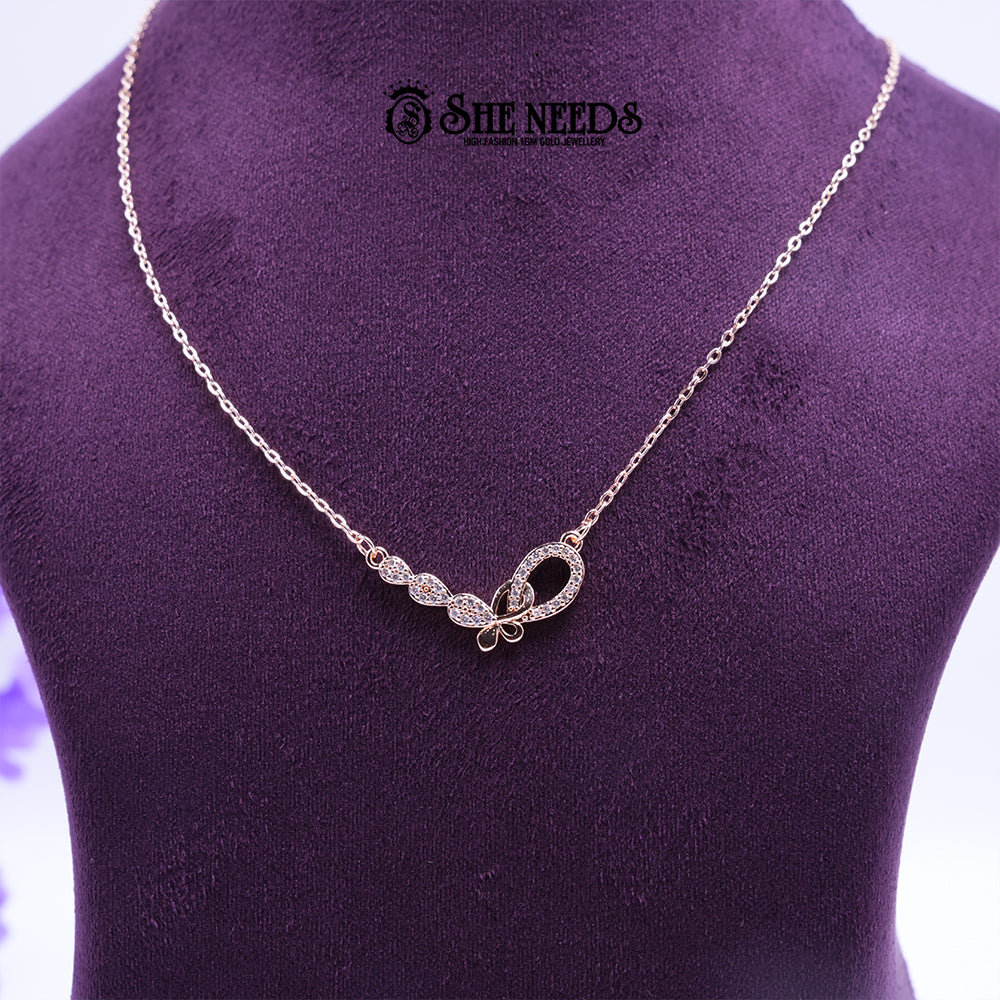 A stunning rose gold necklace with an asymmetrical petal motif encrusted with shimmering stones and a unique oval accent. This beautifully crafted piece brings refined elegance to festive, party, or special day looks.