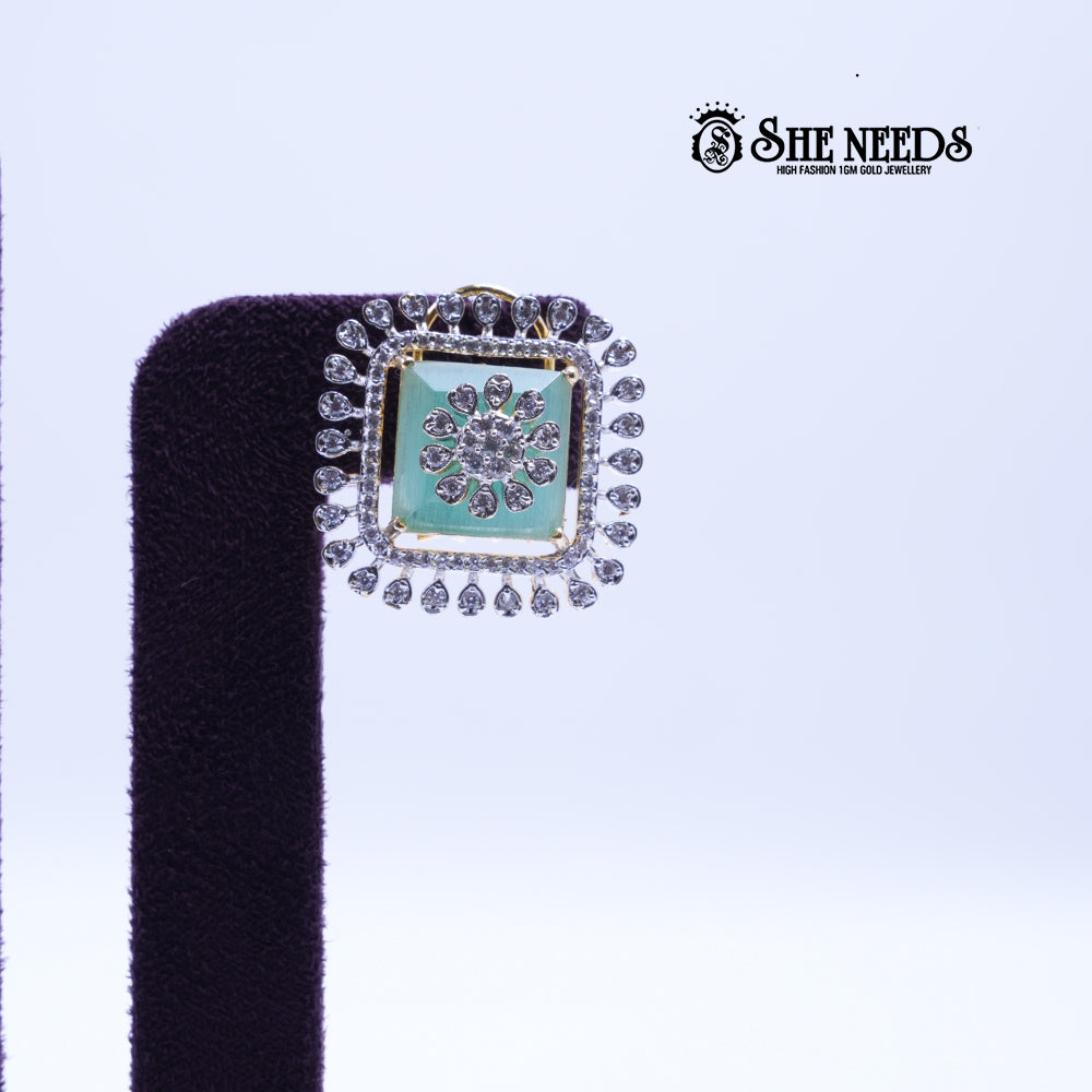 Product Name: Mint Square Floral Studs