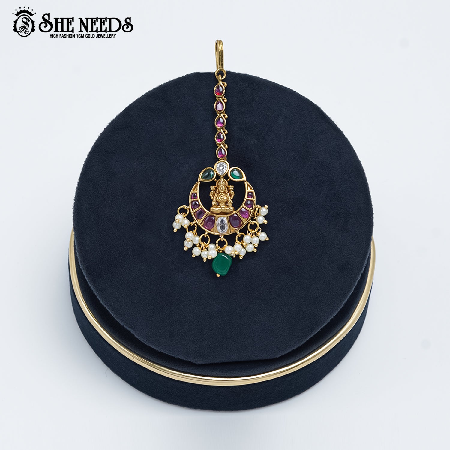 Product Name: Lakshmi Temple Tikka with Stones & Pearls