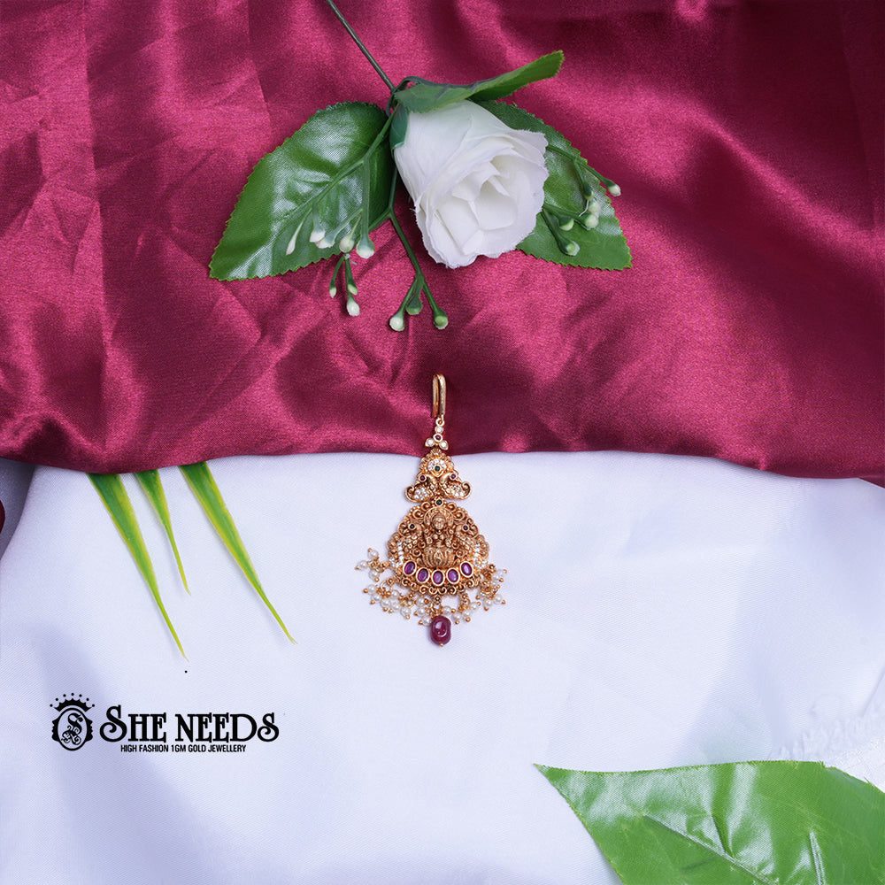 Product Name: Ruby Kundan Temple Pearl Pendant