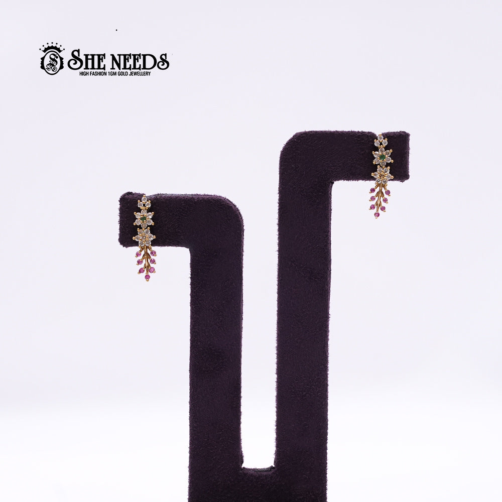 Delicate yet impactful, the Crimson Bloom Drop Earrings blend vibrant charm with refined elegance. Featuring floral tops and a graceful crimson drop trail, these earrings are designed for effortless style—from ethnic wear to Indo-western looks.
