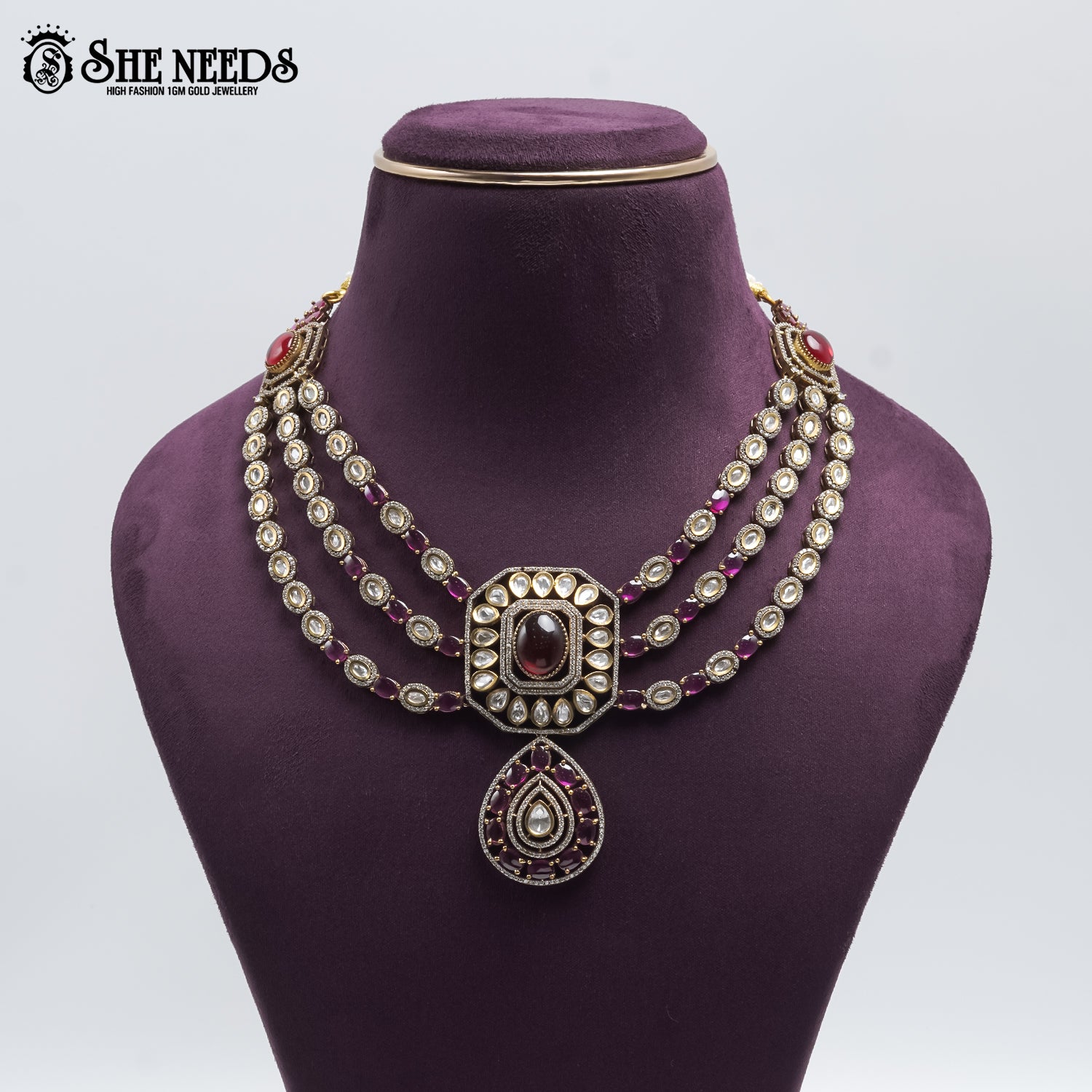 Product Name: Ruby Elegance Triple-Strand Kundan Necklace Set