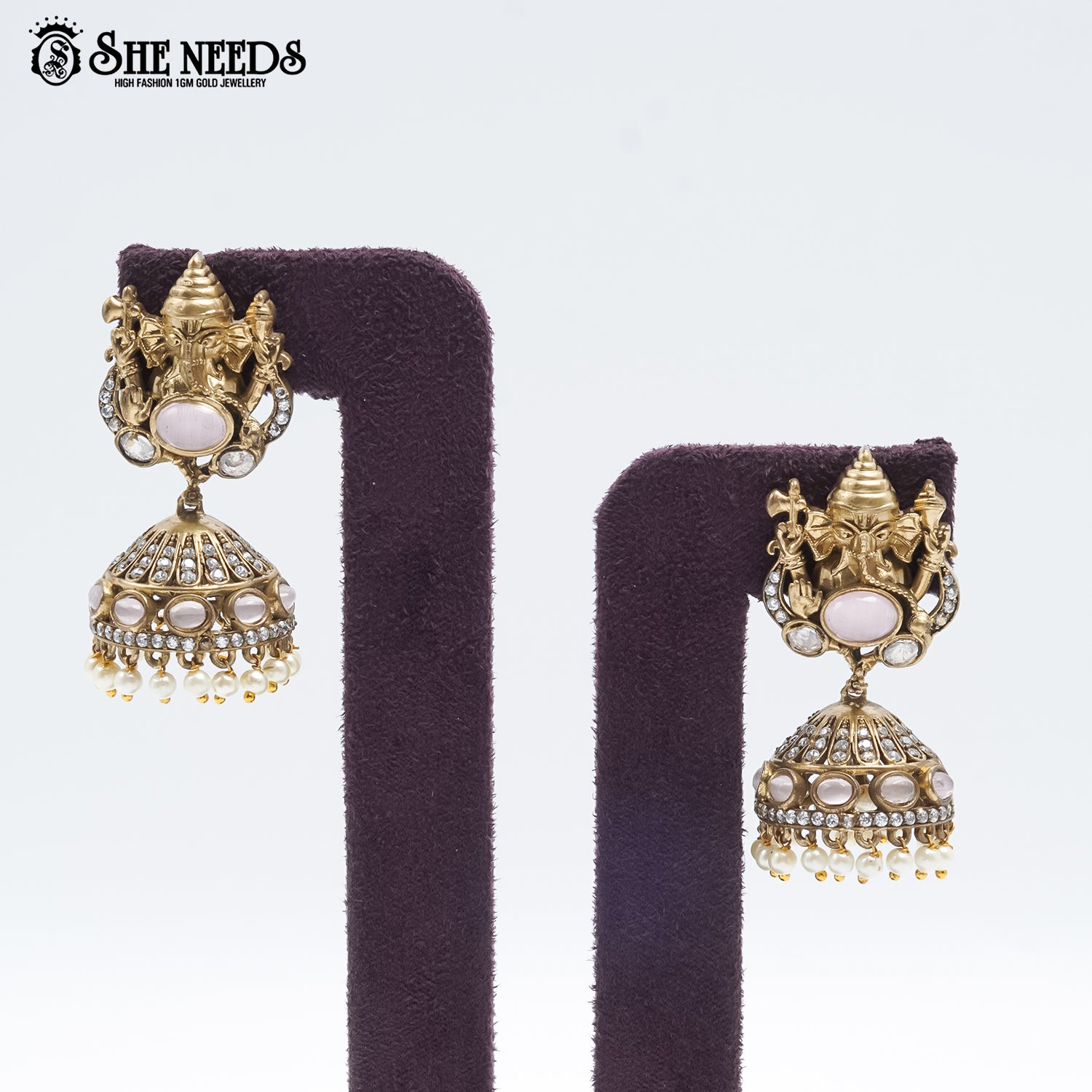Elevate your ensemble with the Royal Elephant Empress Earrings. Featuring the iconic elephant design encrusted with radiant stones and delicate red and green gemstone details, these earrings pair seamlessly with festive and formal wear alike.