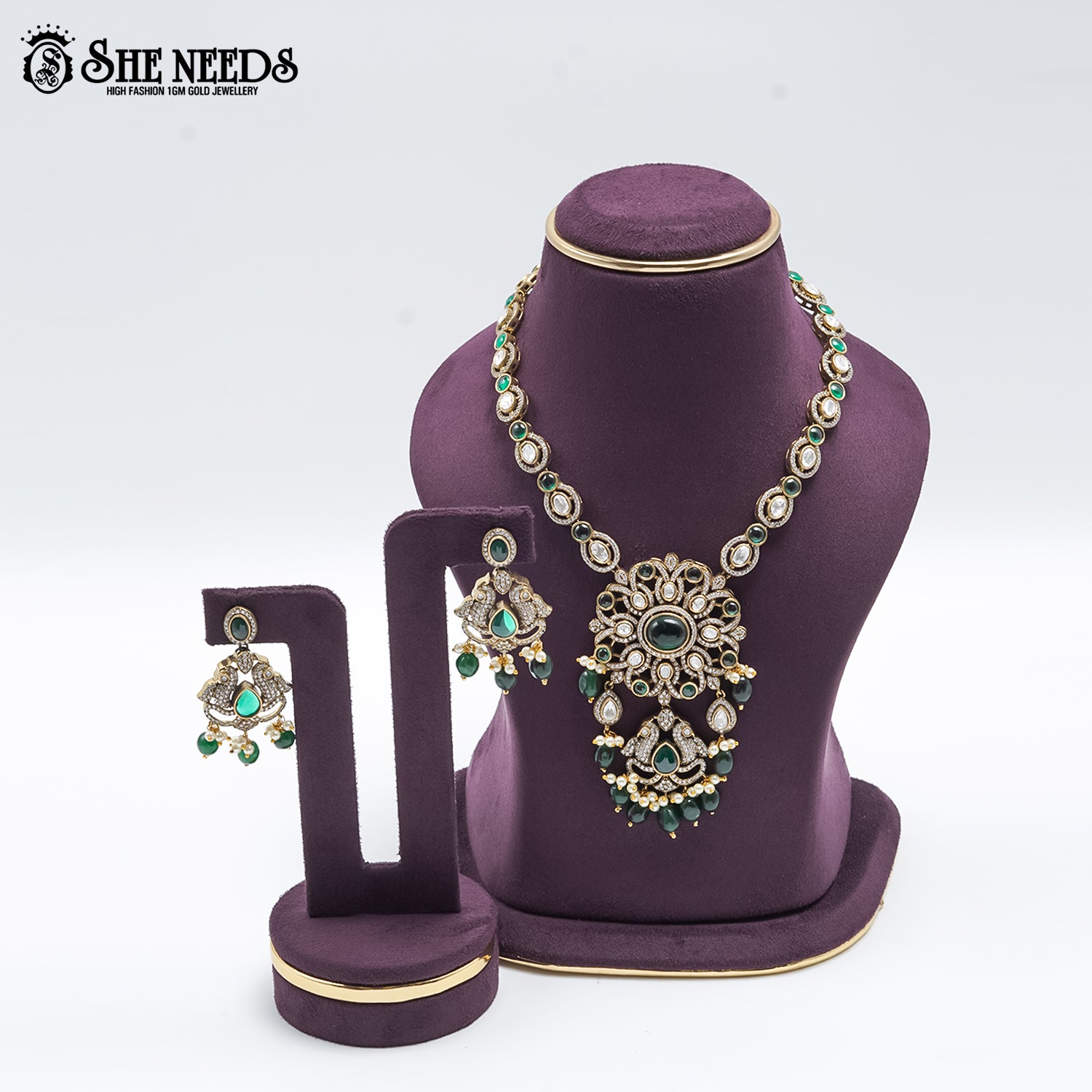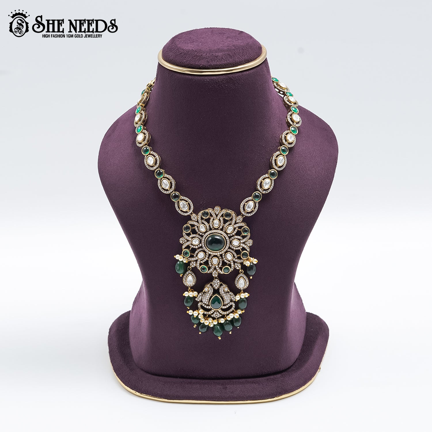 Product Name: Royal Empress Kundan Green Stone Bridal Necklace Set